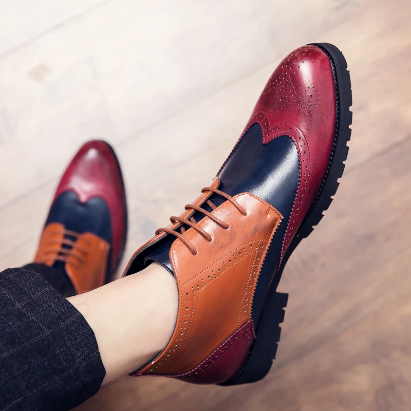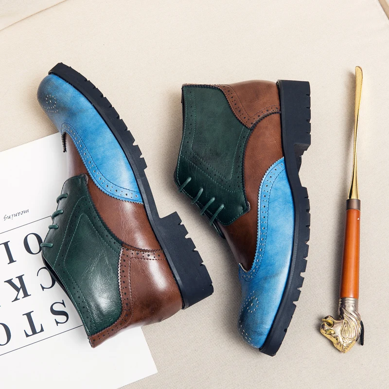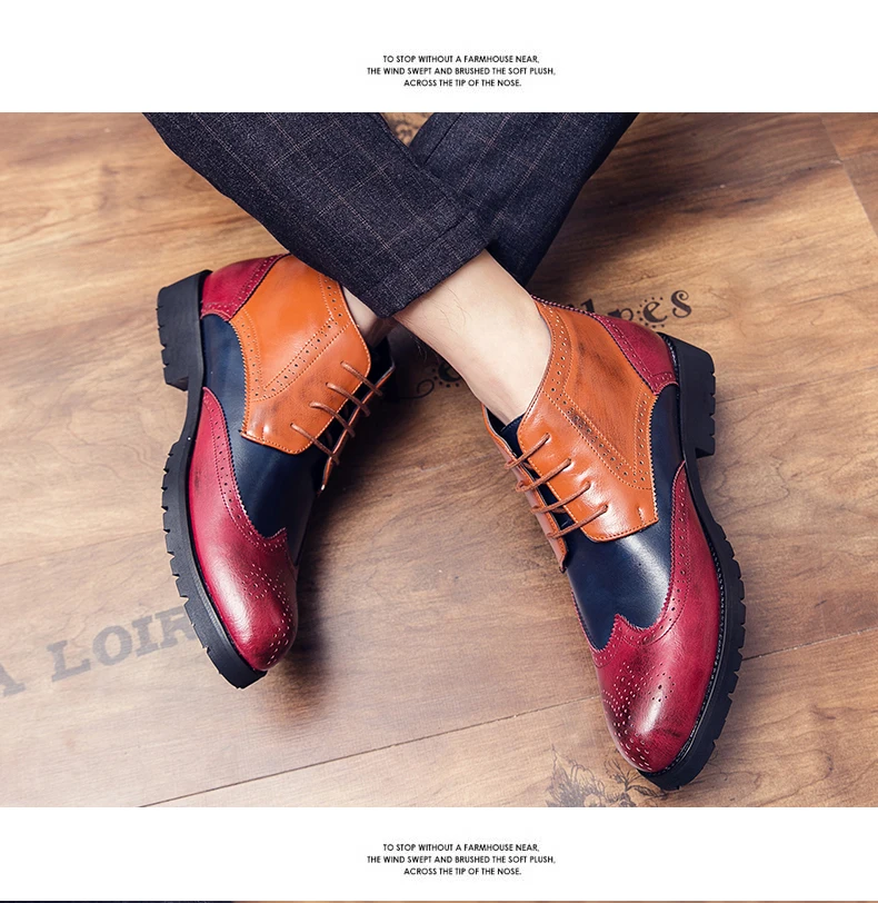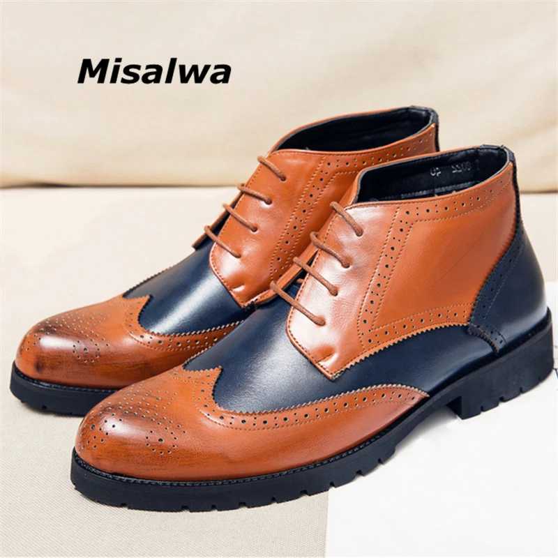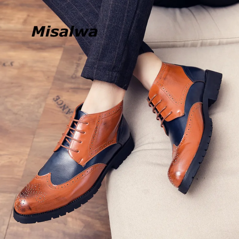 Мужские ботинки-броги Misalwa из искусственной кожи, с высоким берцем, большие, синие, красные, смешанные цвета, британские свадебные ботинки, туфли оксфорды повседневные