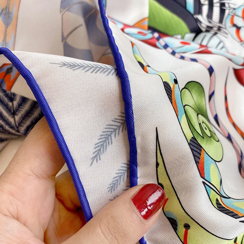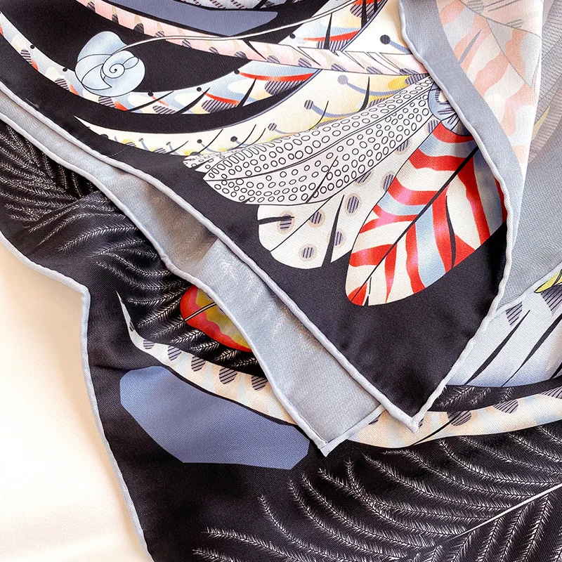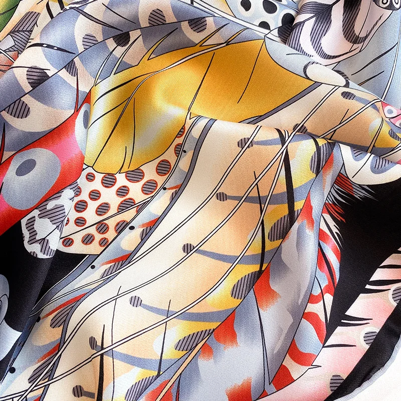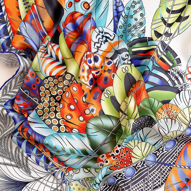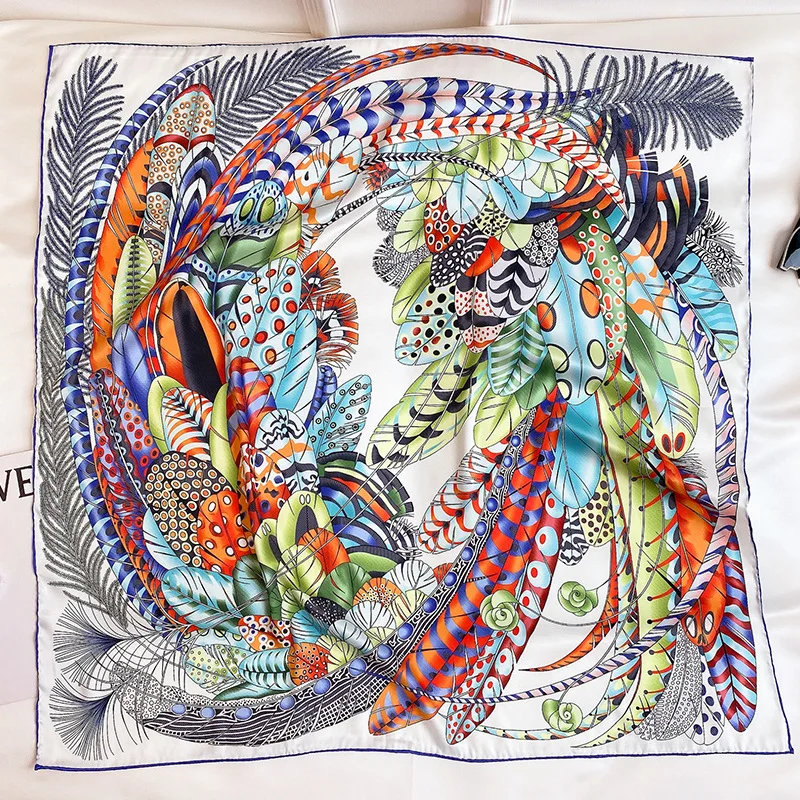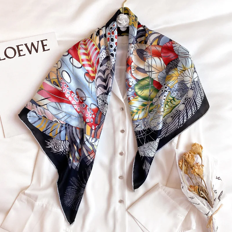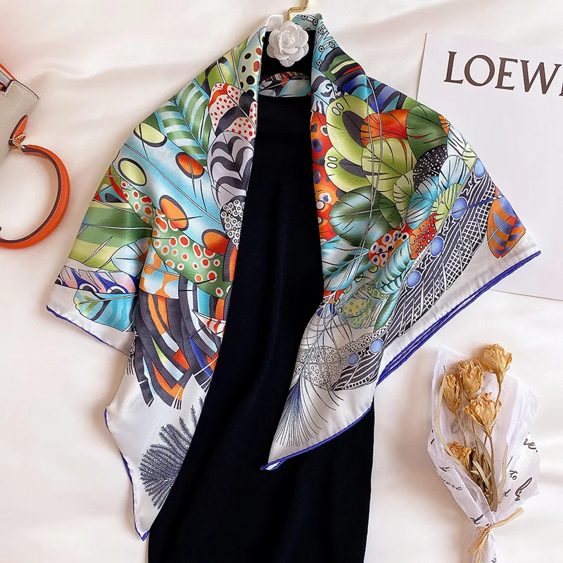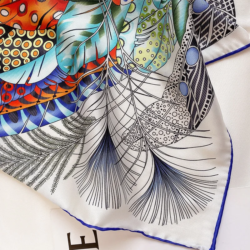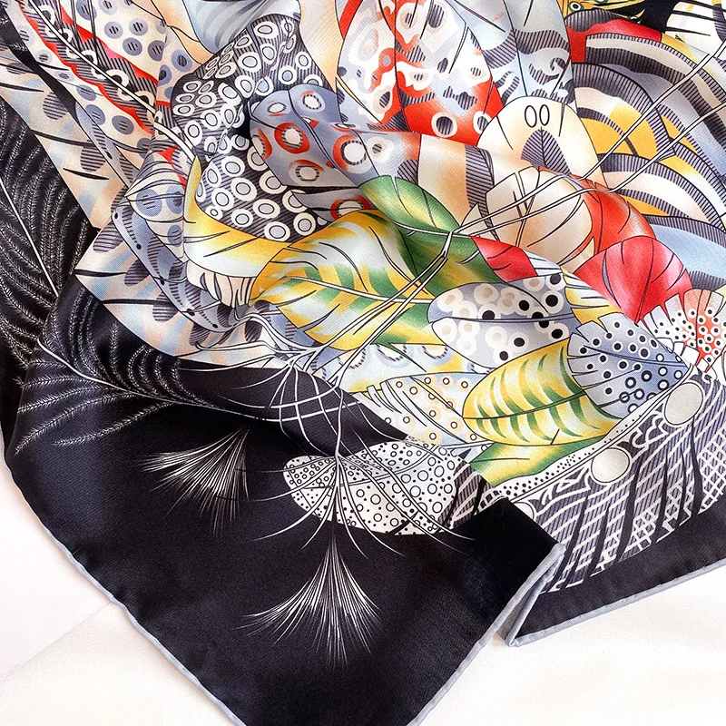 KOI LEAPING, Новый Ретро Модный Шелковый шарф 90 с перьями, ручной стежкой, большой квадратный декоративный шелковый шарф, шаль, подарок