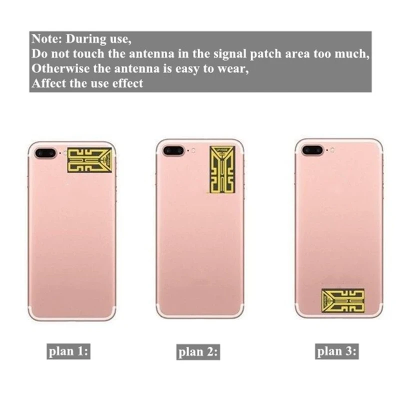 Откройте заднюю крышку мобильного телефона, выньте батареи и протрите Место вставки наклейки сигнала. Затем слегка Оторвите усилитель сигнала от блистерной карты и вставьте его хорошо с помощью «вверх» выравнивания с антенна сотового телефона. Получите обратно аккумуляторы и крышку, затем включите питание.