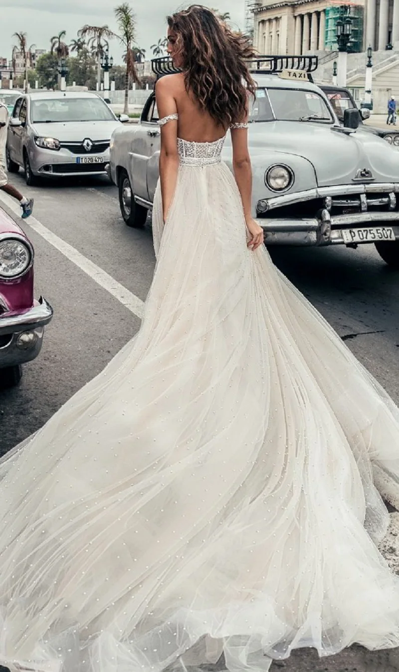 Свадебное платье в стиле бохо Sevintage, Тюлевое платье с кружевной аппликацией и жемчугом, Пляжное вечернее платье принцессы для невесты