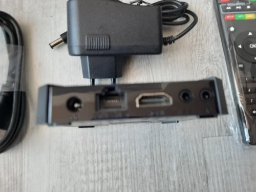 simple. joli petit boîtier. alimentation et câble hdmi. belle définition à l écran. en attente du code