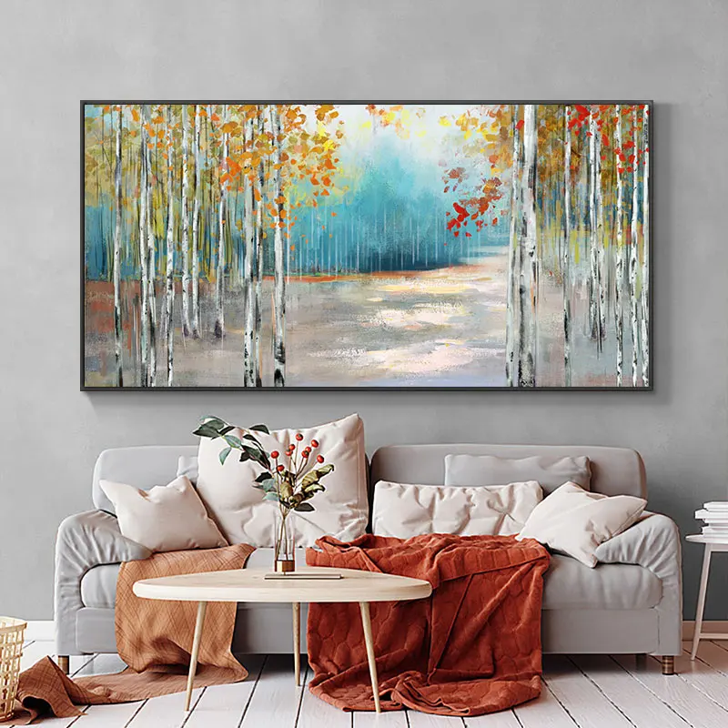 Картина маслом с оранжевым и зеленым кленовым лесом, настенное худо...