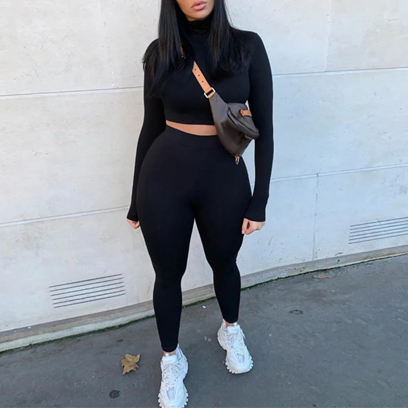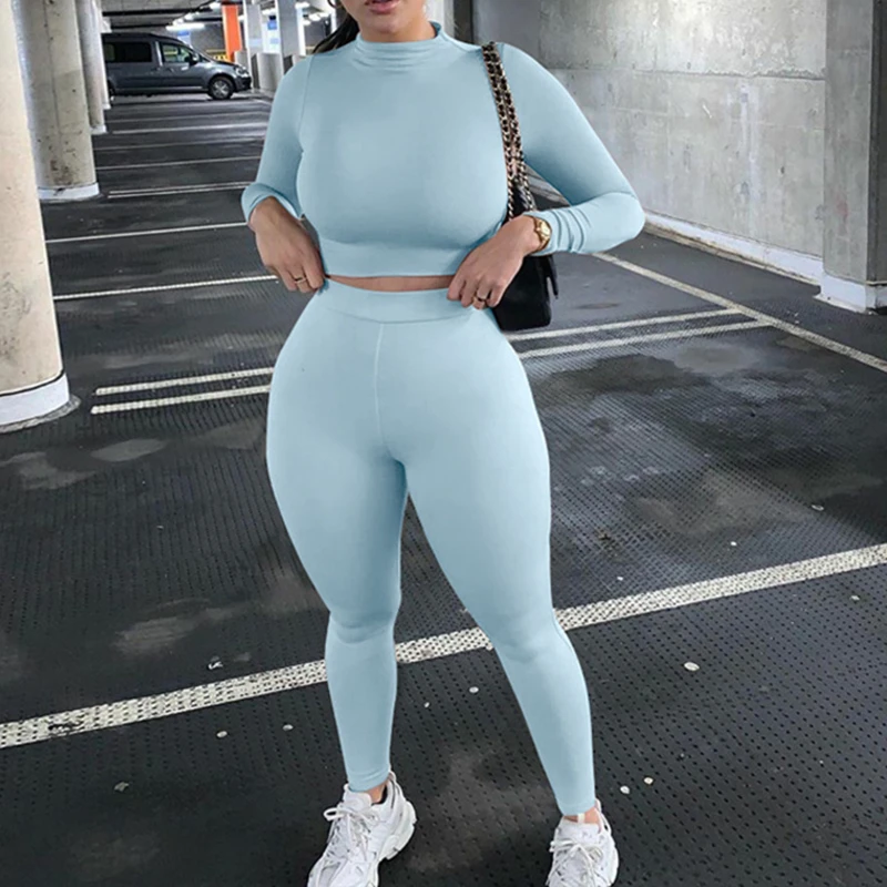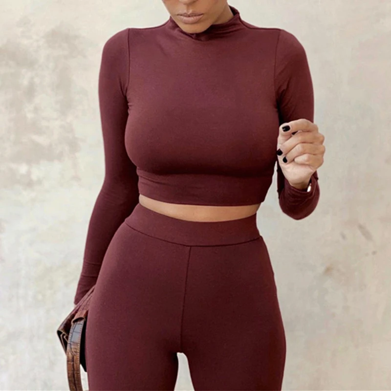 Осень-зима 2020, сексуальный спортивный комплект из 2 предметов, спортивный костюм, спортивная одежда для фитнеса, повседневная одежда, женский укороченный Топ с длинным рукавом + леггинсы, штаны