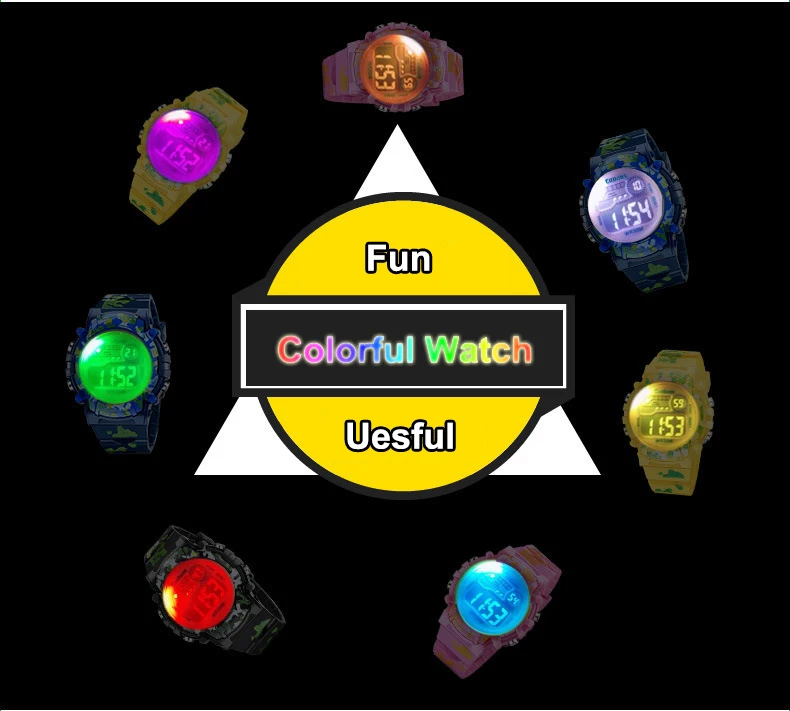 Часы камуфляжные детские, для мальчиков и девочек, с цветным светод...