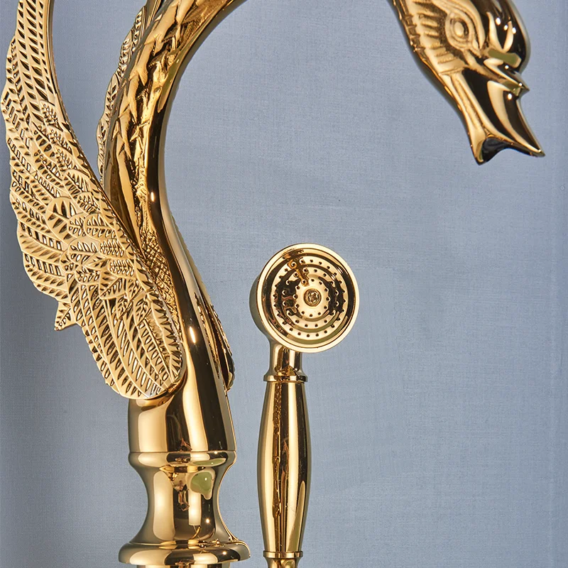 Смеситель для ванны, свободный смеситель из золотистой латуни, ручной, одна ручка, набор для ванны с напольным креплением