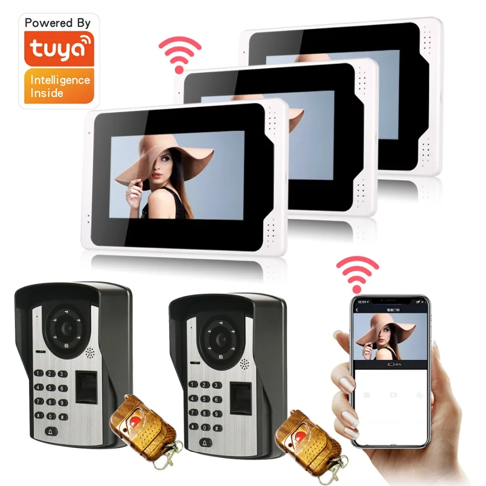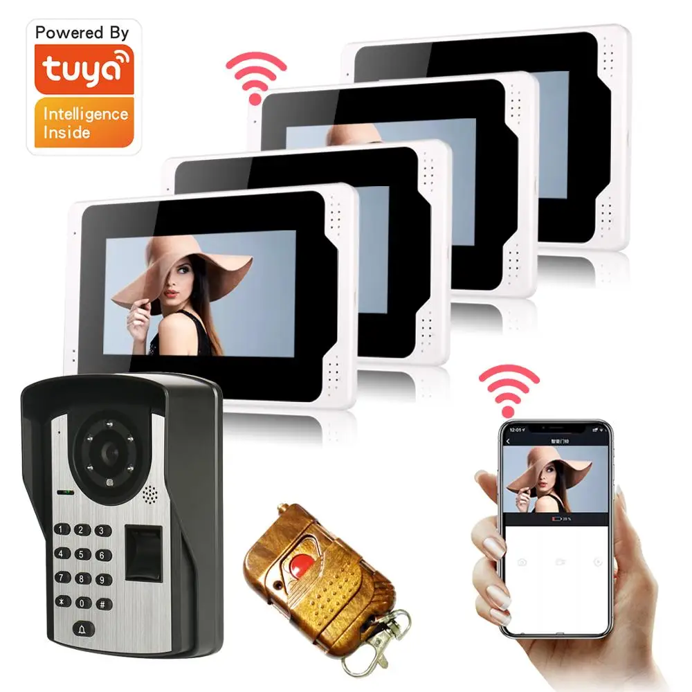 Приложение Tuya Управление отпечатков пальцев видео домофон 7 дюймов монитор видео домофон охранных Системы видео дверной звонок камера