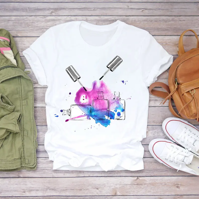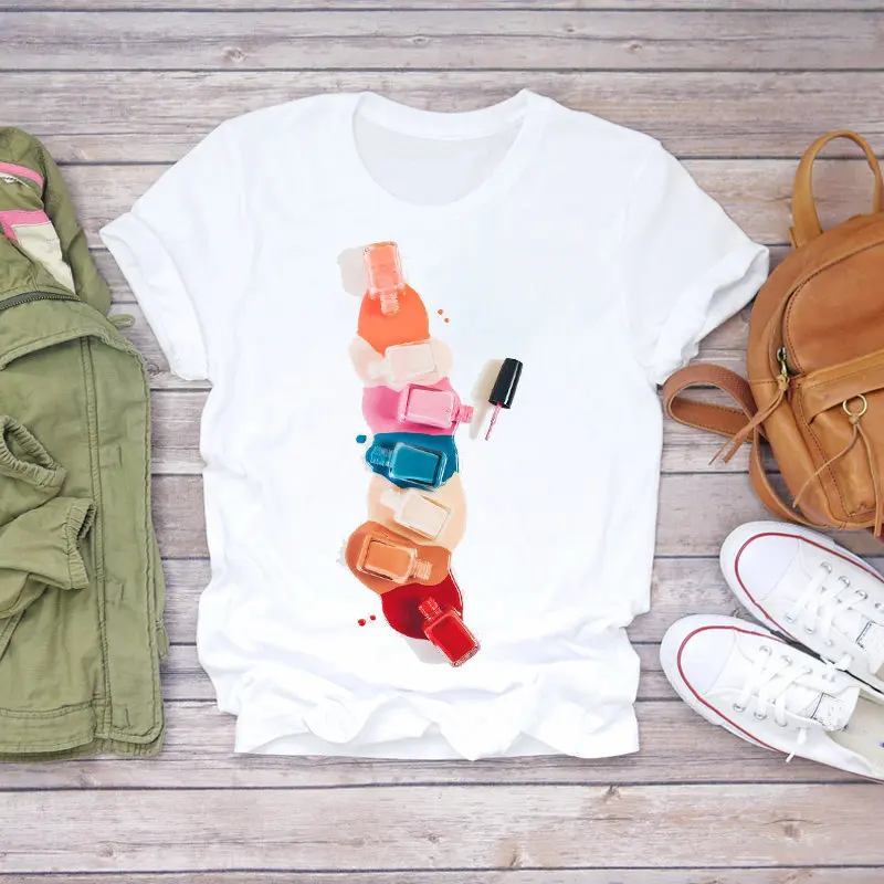 Женская Винтажная футболка с коротким рукавом, круглым вырезом и принтом ногтей