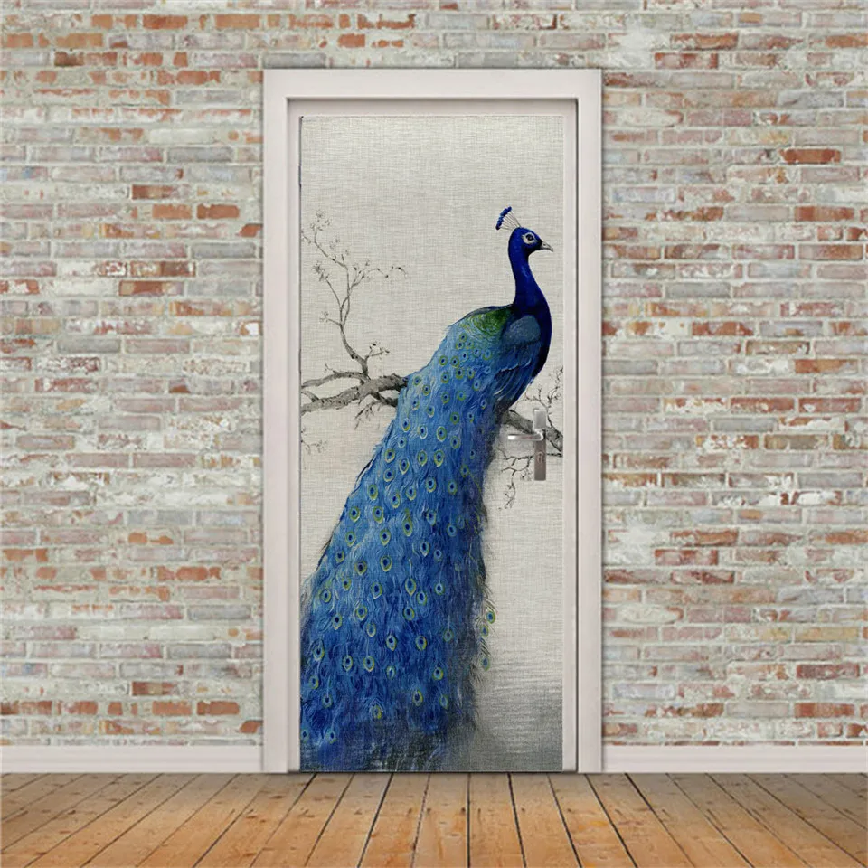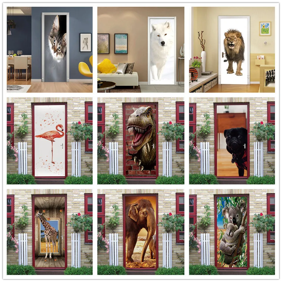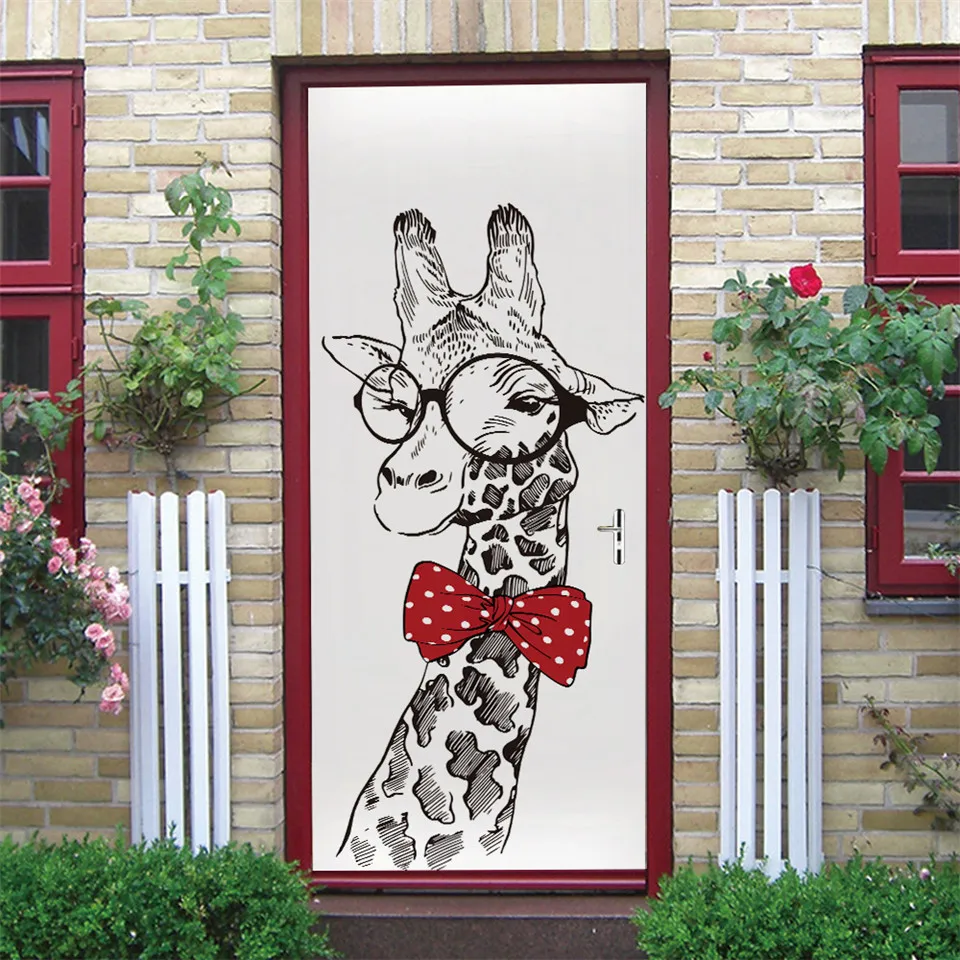 Обои с животными, 3D наклейка на дверь для детской комнаты, декоративное клейкое виниловое настенное украшение для дома, постер с жирафом, наклейка на стену
