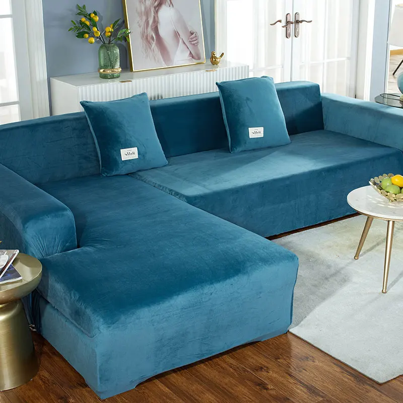Бархатный плюшевый L-образный чехол для дивана, эластичный чехол для гостиной, шезлонг, угловой диван, растягивающийся зимний чехол
