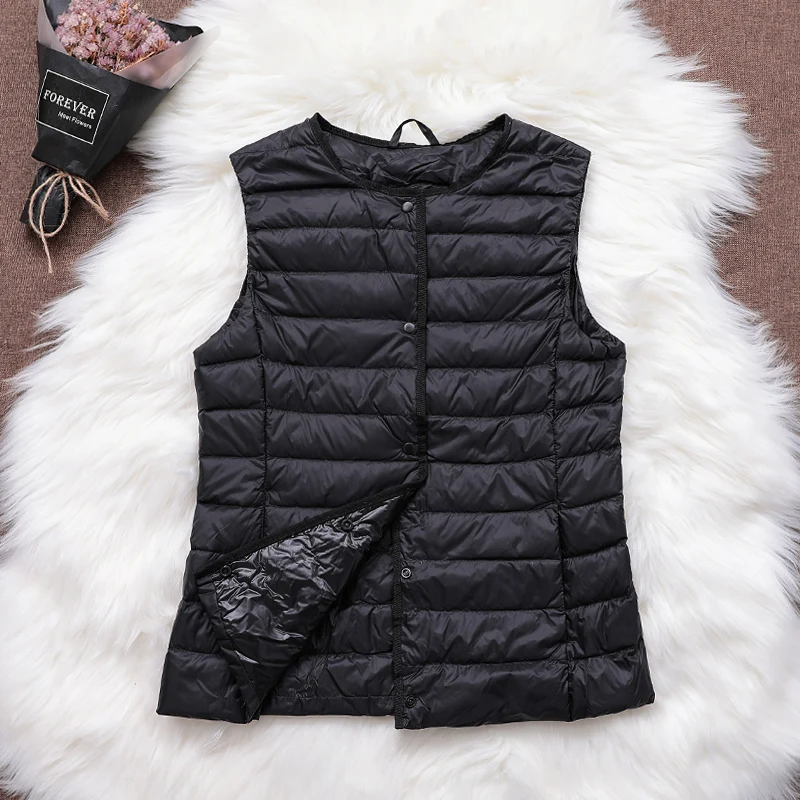 Жилет FTLZZ женский ультра легкий, тонкая куртка на 90% белом утином пуху, жилет без рукавов, простая стильная теплая верхняя одежда с круглым воротником