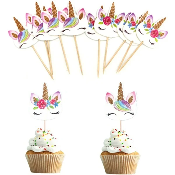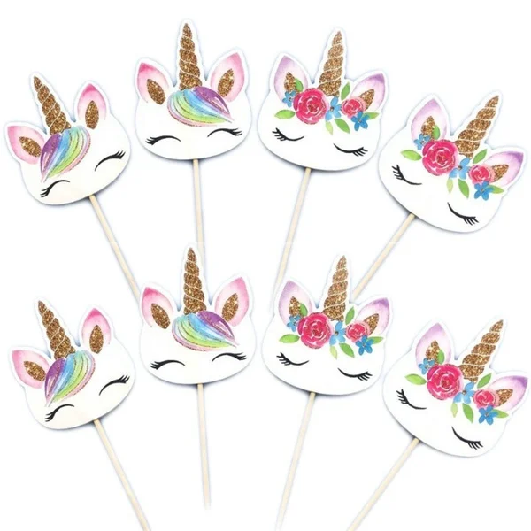 24 шт.Лот украшения для детского праздника, Мультяшные единороги, топперы для кексов, украшения тортов, карты, медиаторы для детей, девочек, товары для дня рождения