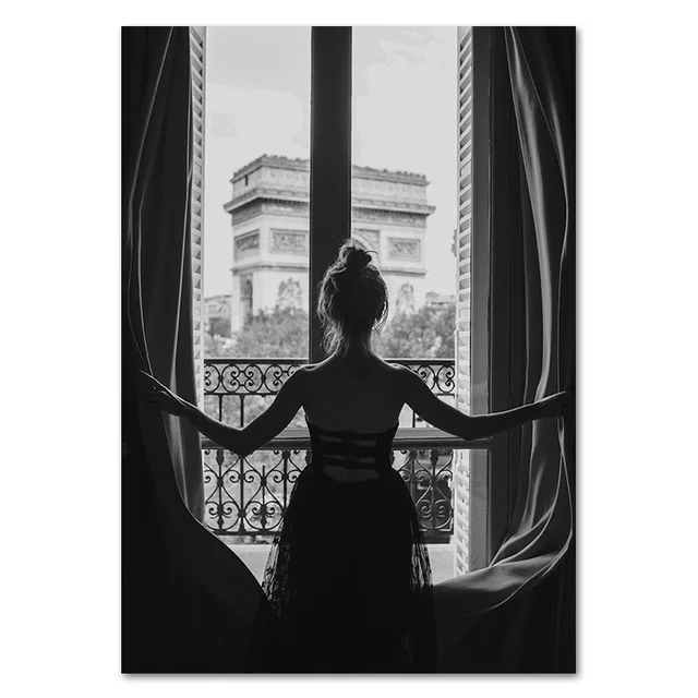 Ретро-постер в европейском стиле с классическим пейзажем, черно-бел...