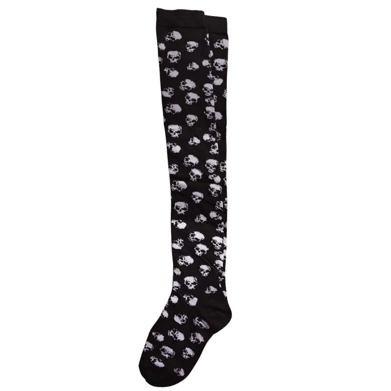 Чулки женские с рисунком черепа, хлопковые эластичные Нескользящие креативные термостойкие чулки на Хэллоуин, для отдыха, для осени и зимы