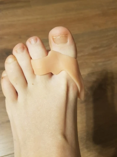 очень мягкий силикон. не понятно как будет идти лечение/выпрямление. боковая сторона не прилипает к ноге. нужно одевать носки (может так и задумано)