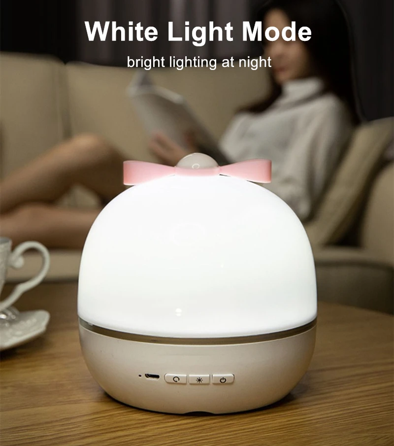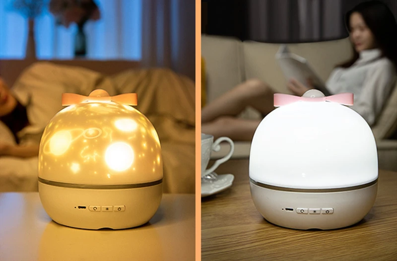 Лампа, как в описании. Покупалась для ребёнка 1.5 года, девочка в восторге и не отходила от лампы весь вечер. Приятно удивила встроенная колонка, по блютузу можно подключиться к своему телефону и выбрать любую музыку, проекция на потолок только при снятом колпаке, но при этом, картинка великолепная!!! спасибо продавцу!
