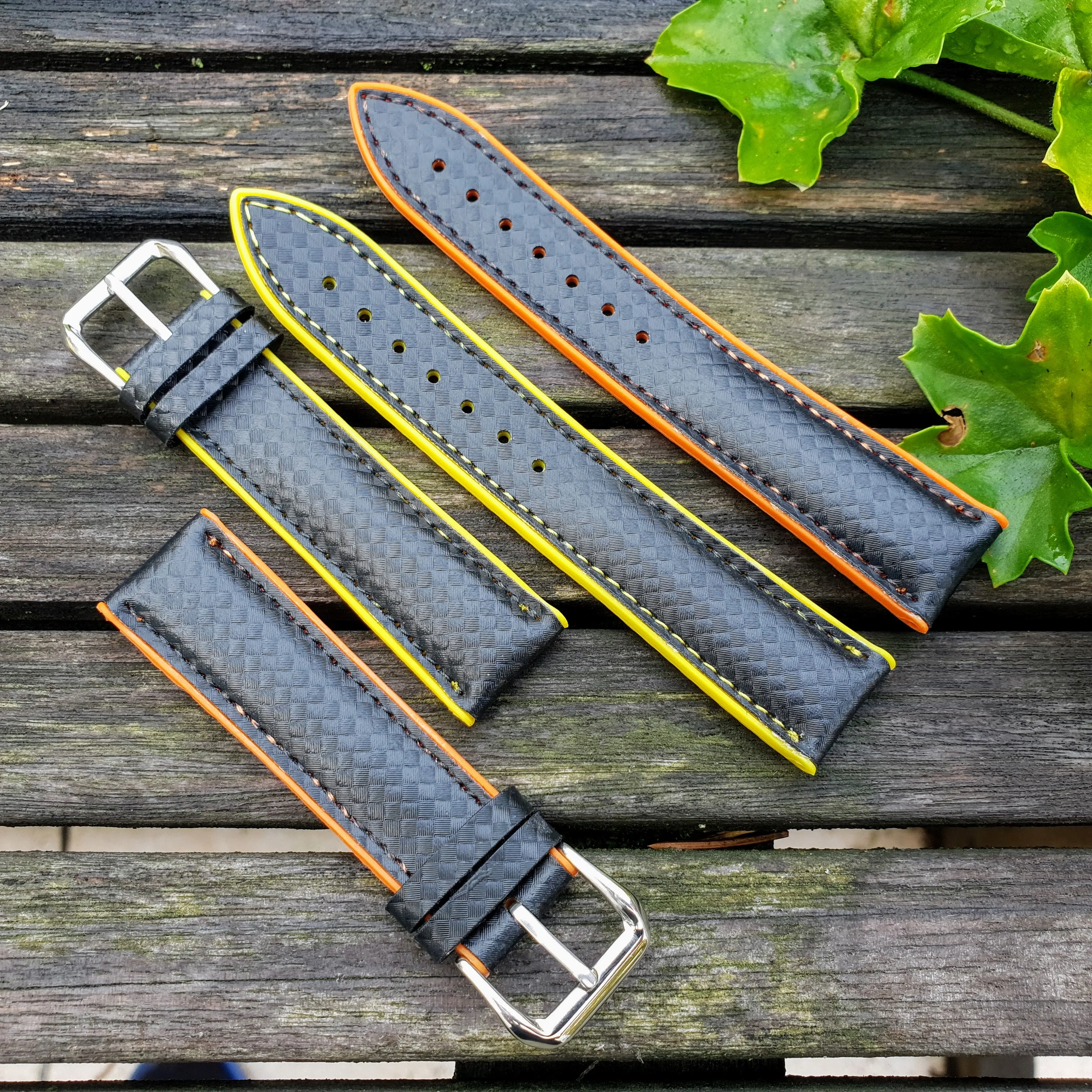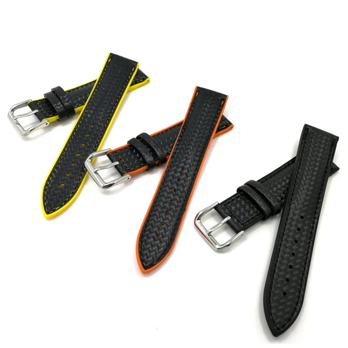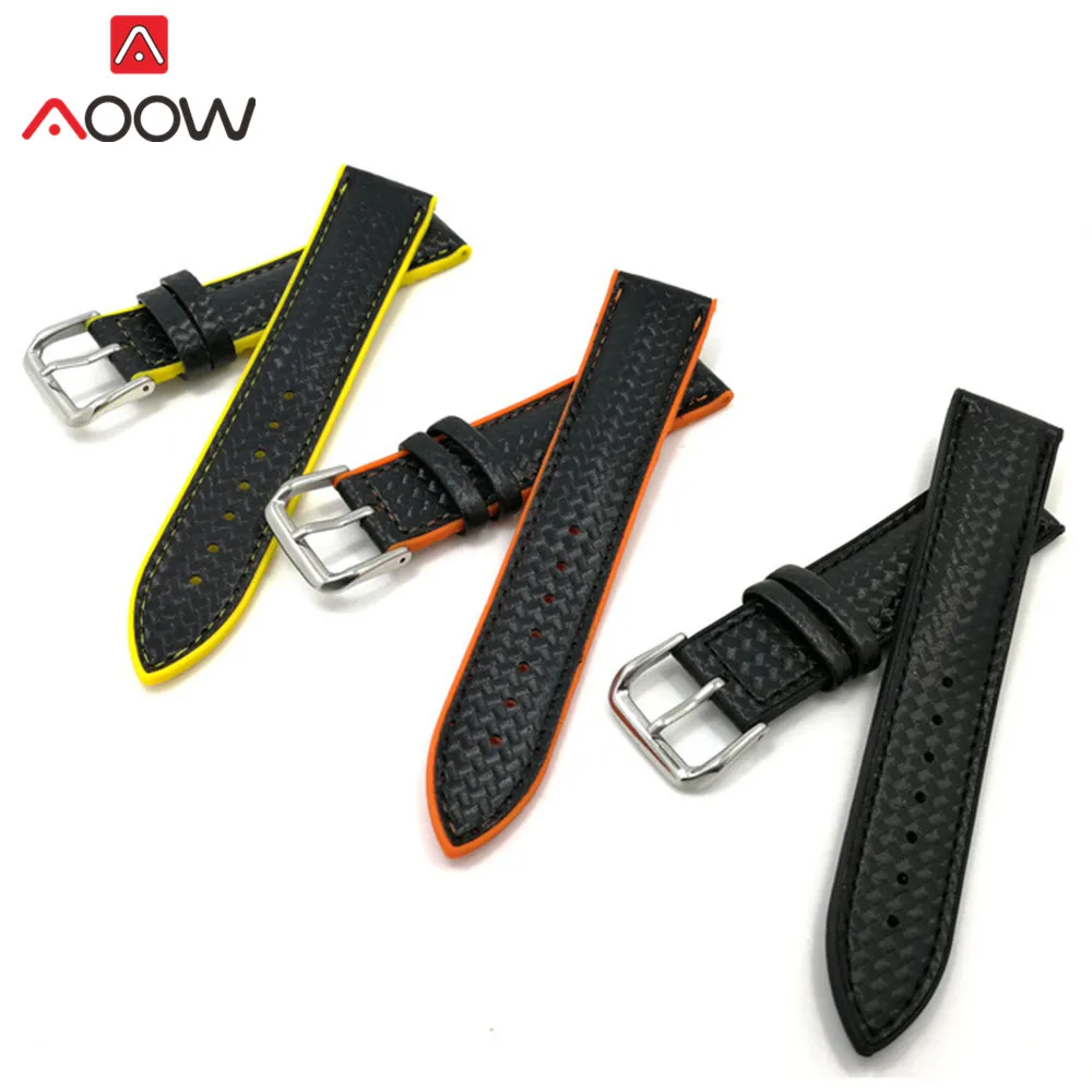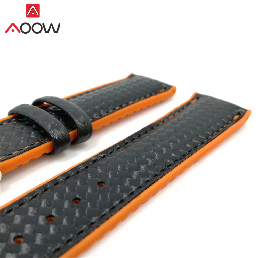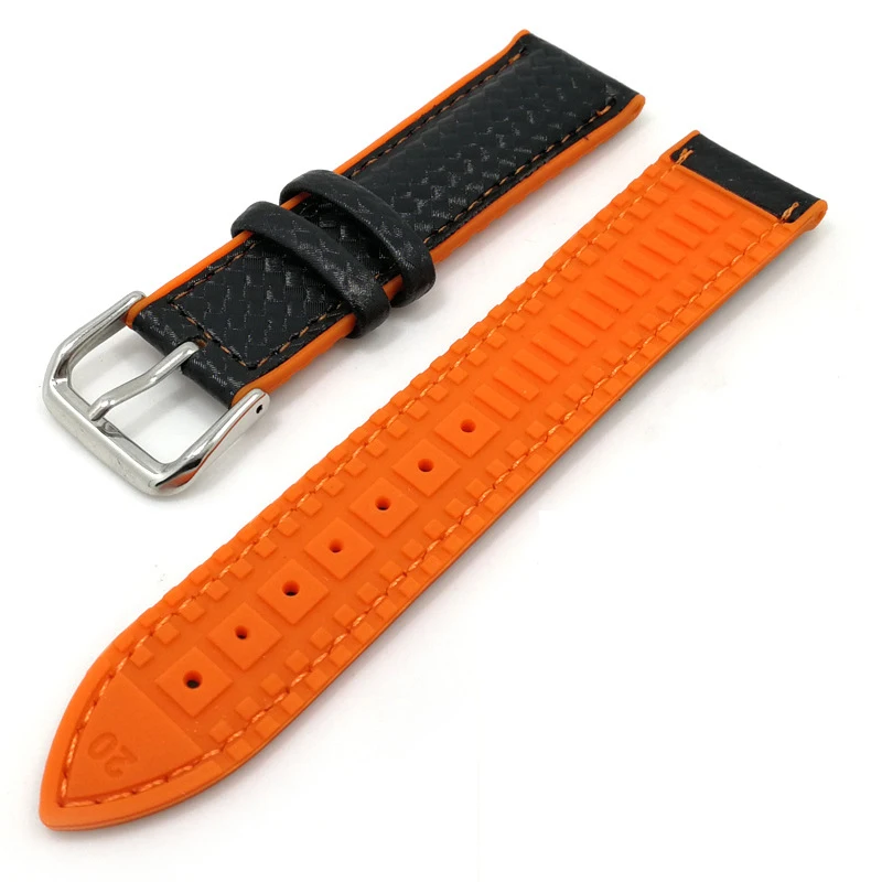 Ремешок силиконовый из углеродного волокна для мужских часов, водонепроницаемый резиновый сменный Браслет для пота, аксессуары для часов, оранжевый, 18 мм 20 мм 22 мм
