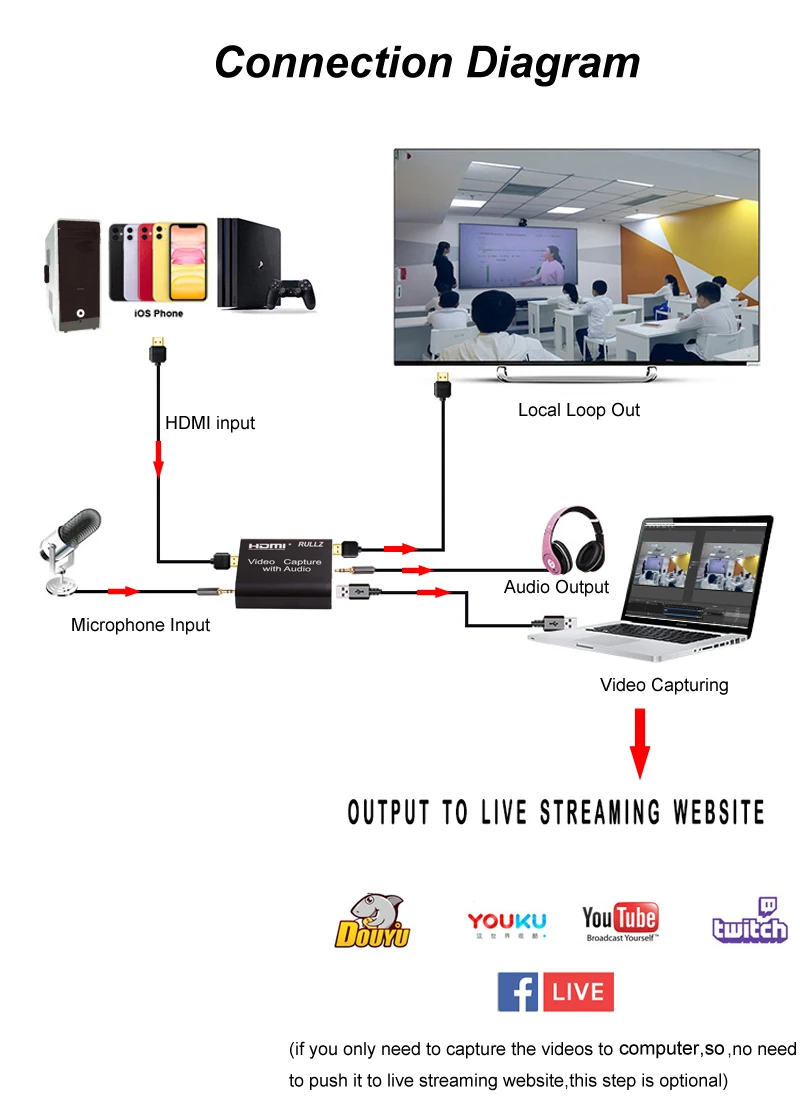 Карта захвата видео Rullz 4K 1080P HDMI к USB 2,0 3,0, аудиовыход, ...