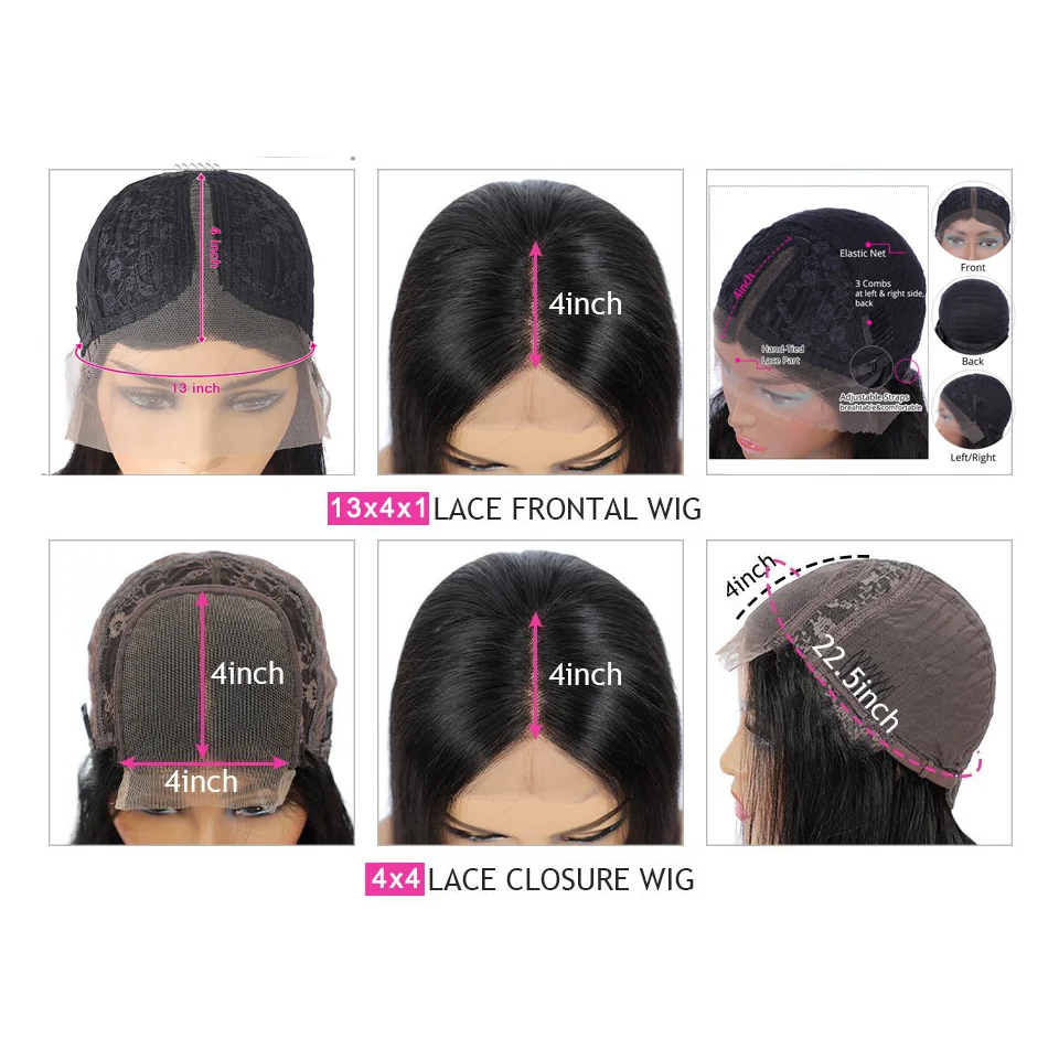 Парик из натуральных бразильских волос, 30, 32, 34, 36 дюймов, 4x4