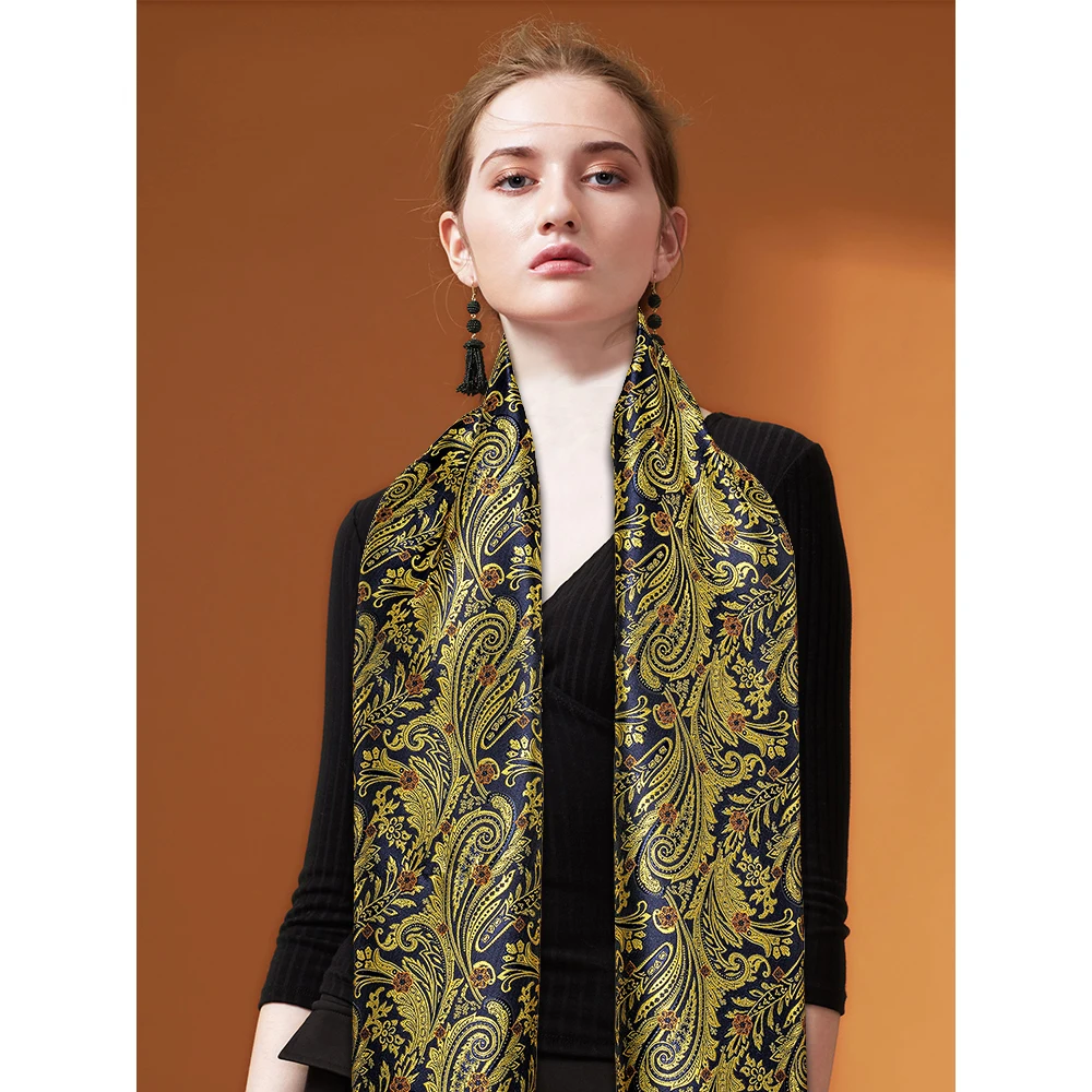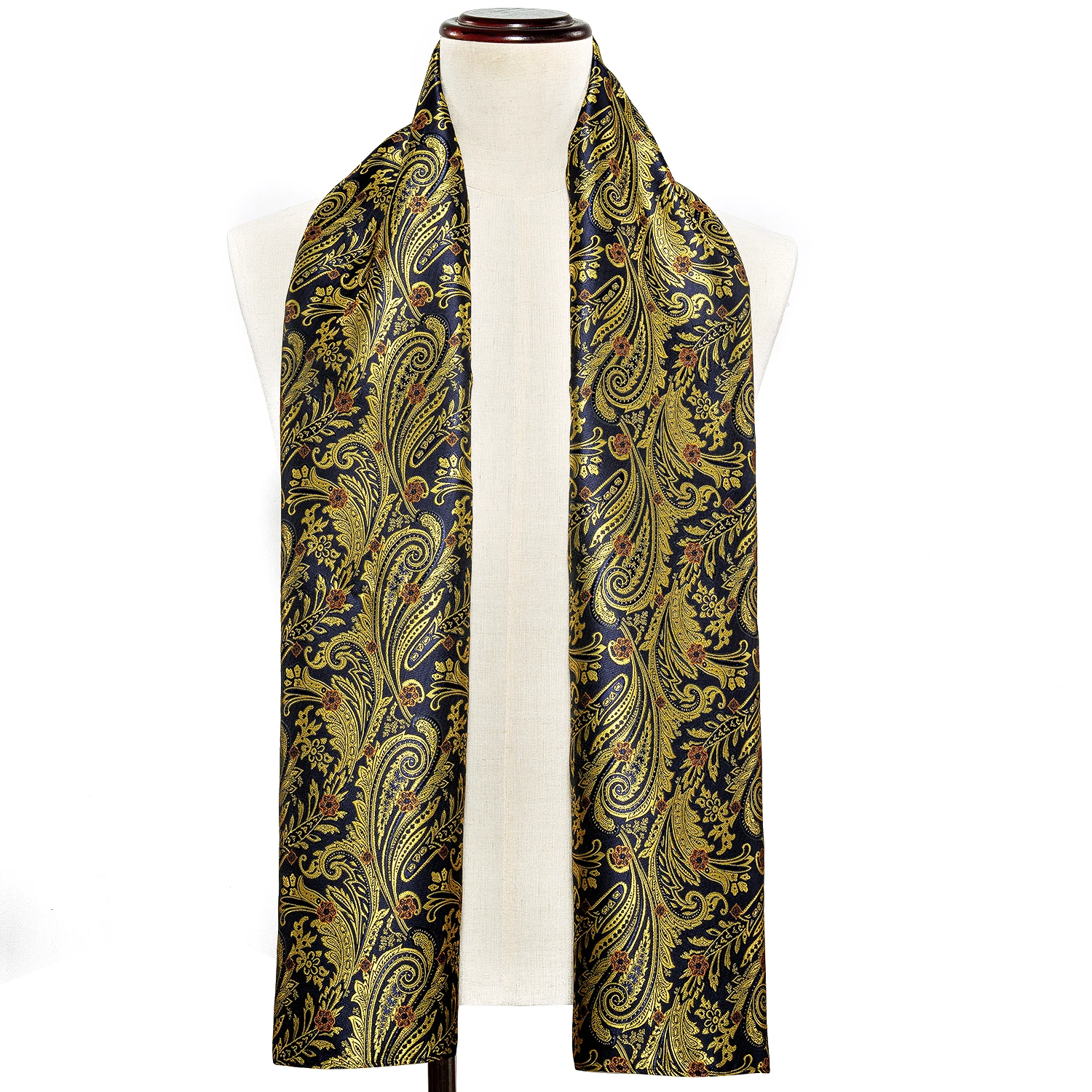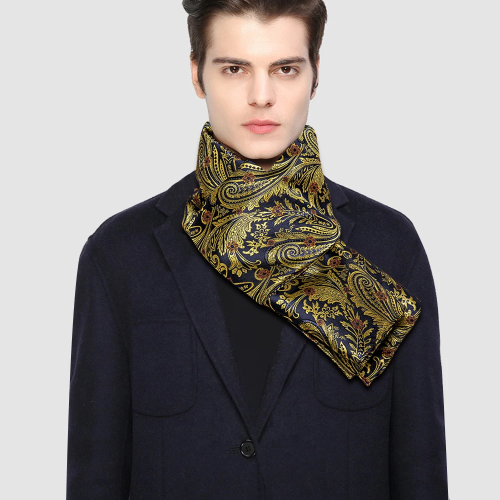 Новый модный мужской шарф, Золотой жаккардовый шарф с пейсли, 100% шелк, Осень-зима, повседневный деловой костюм, рубашка, мягкий шарф Barry.Wang