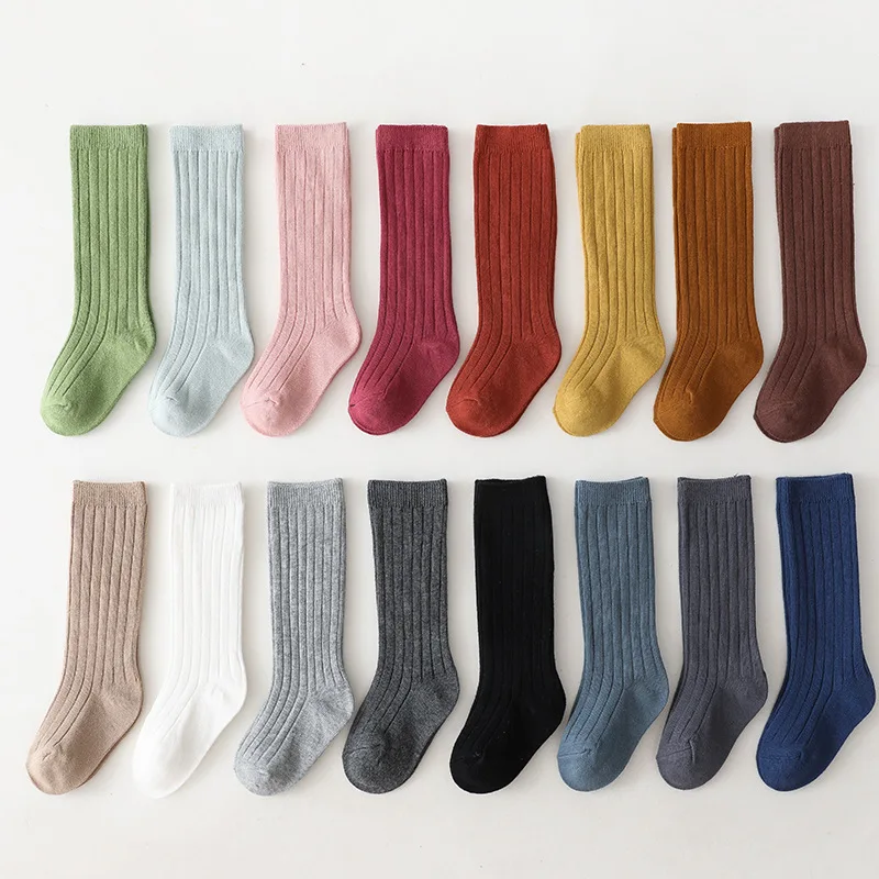 Детские ребристые носки, детские милые испанские носки для новорожденных, для девочек и мальчиков, ярких цветов, до колена, горячая распродажа