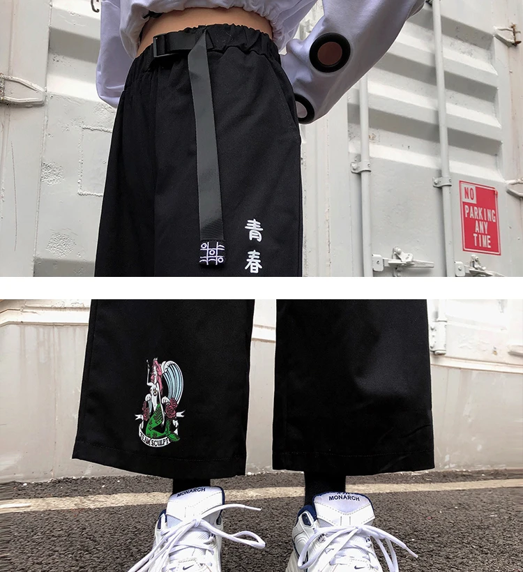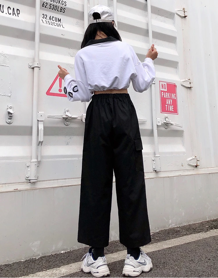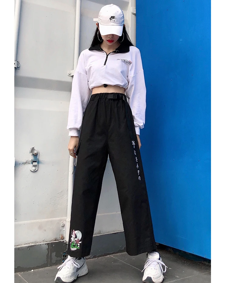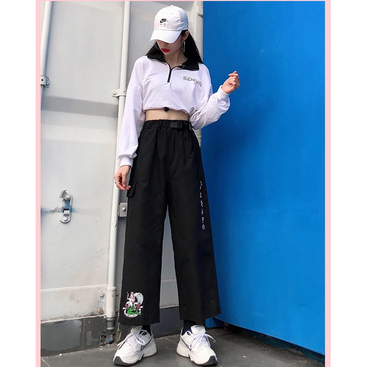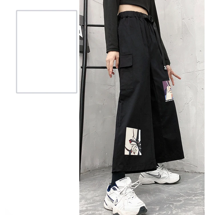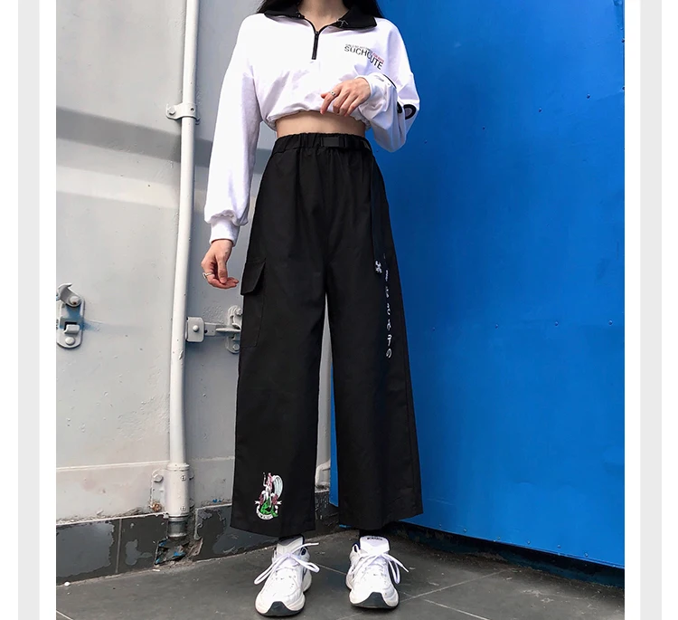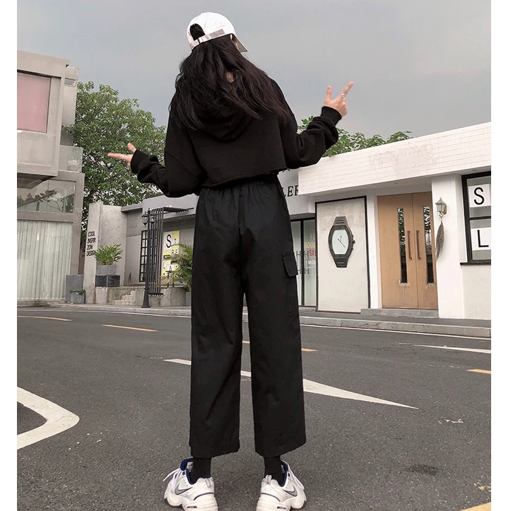 Брюки женские, свободные, с высокой талией, черные, в стиле Харадзюку, повседневные, прямые, широкие, 2021