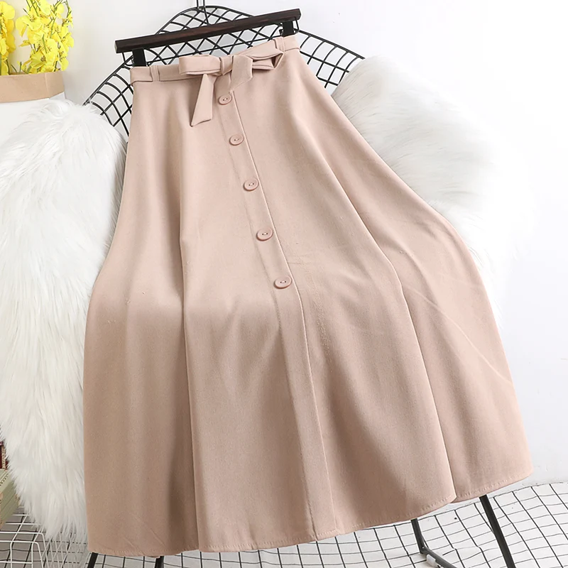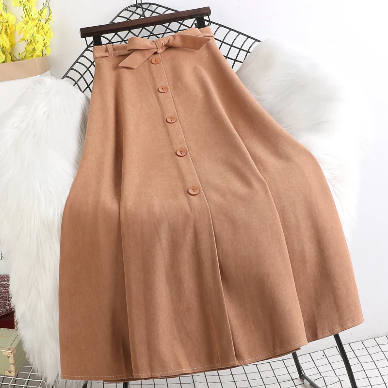 Осенне-зимняя женская юбка-качели, женская модная эластичная однобортная плиссированная юбка средней длины с высокой талией и бантом, мягкая трапециевидная юбка