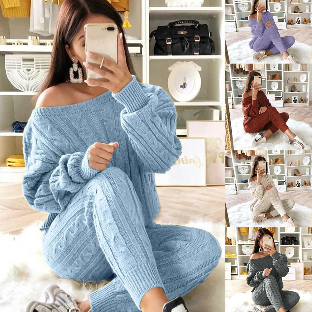 Женский комплект из двух предметов, трикотажный комплект из двух предметов, свитер и брюки, осень-зима 2021