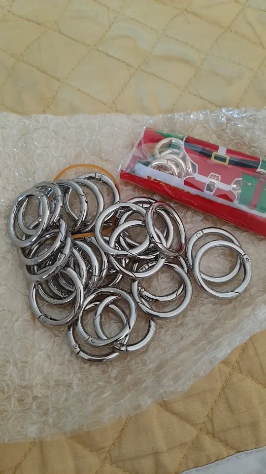 Я очень удивлен этими кольцами/карабинами. Цвет супер яркий, они очень твердые и отлично открываются и закрываются. Сумка была сломана, но они были упакованы в несколько пакетов, и ничего не было повреждено в поездке.