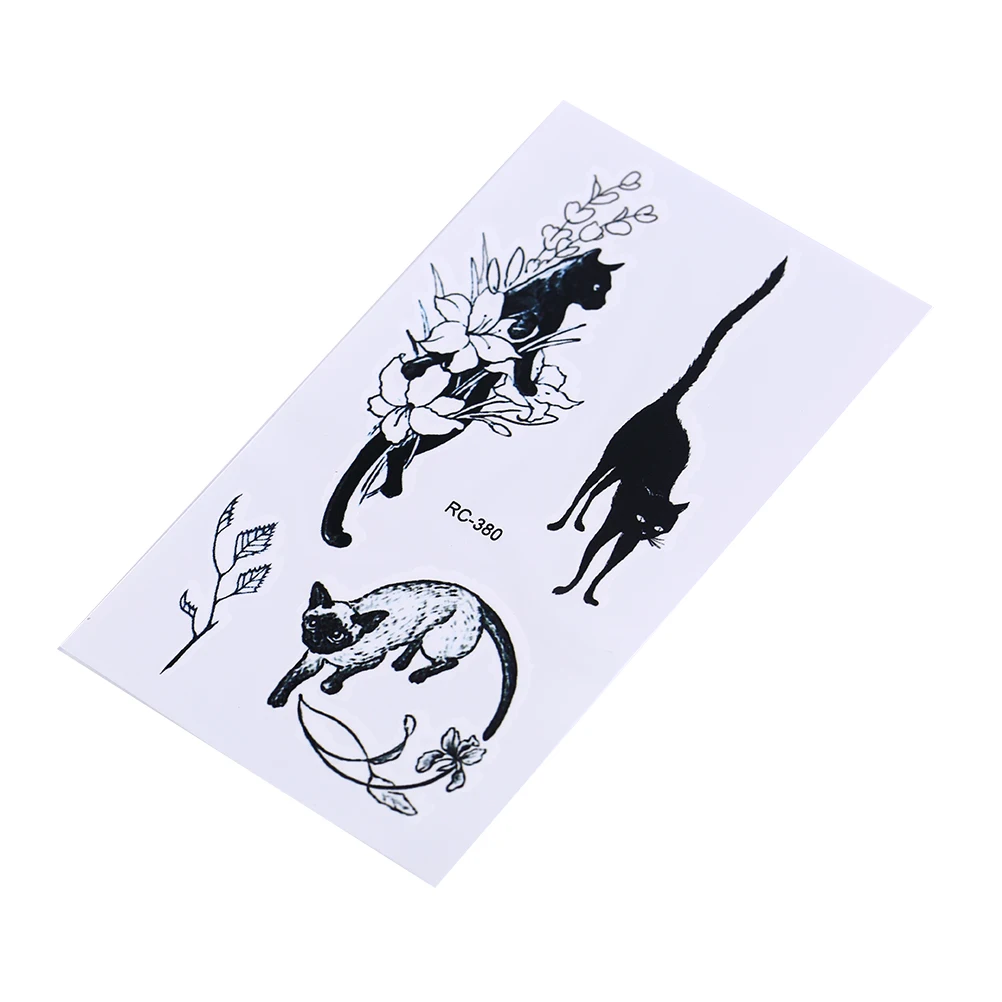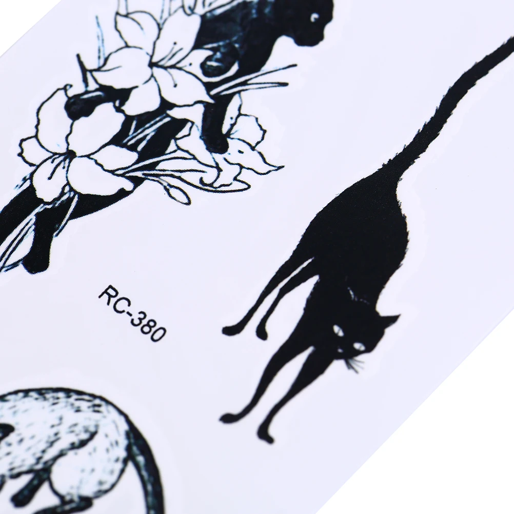 Маленькая черная кошка, водостойкие Временные татуировки, Временные татуировки, временные боди-Арты, флэш-татуировки, хна, татуировки xha для мужчин и женщин
