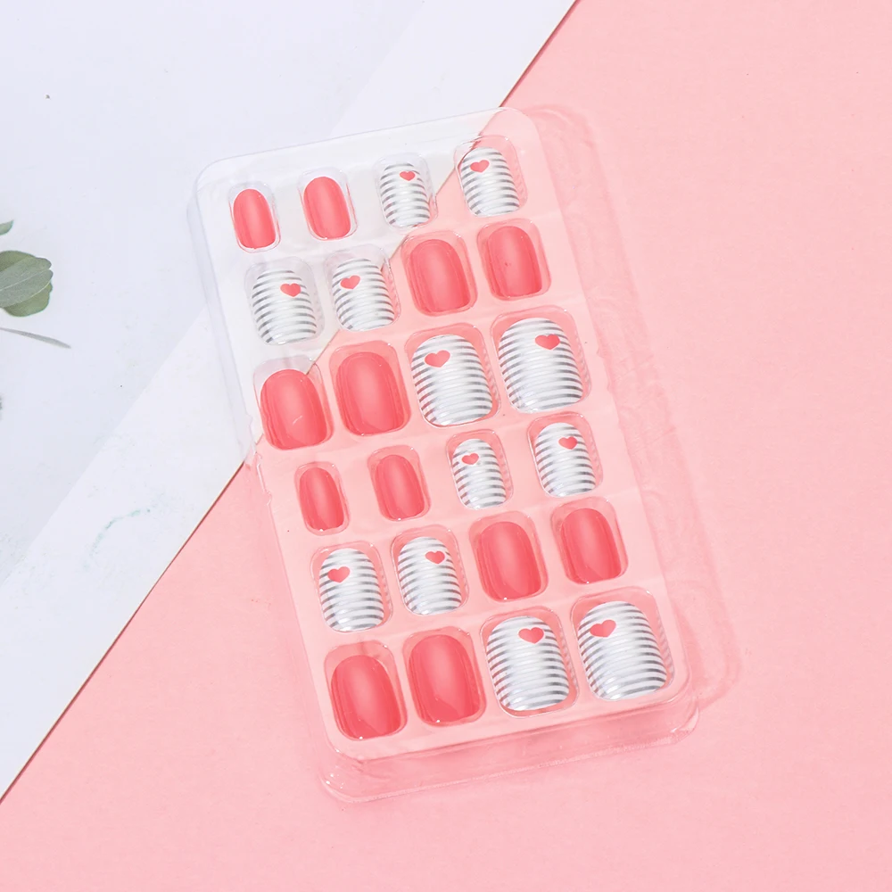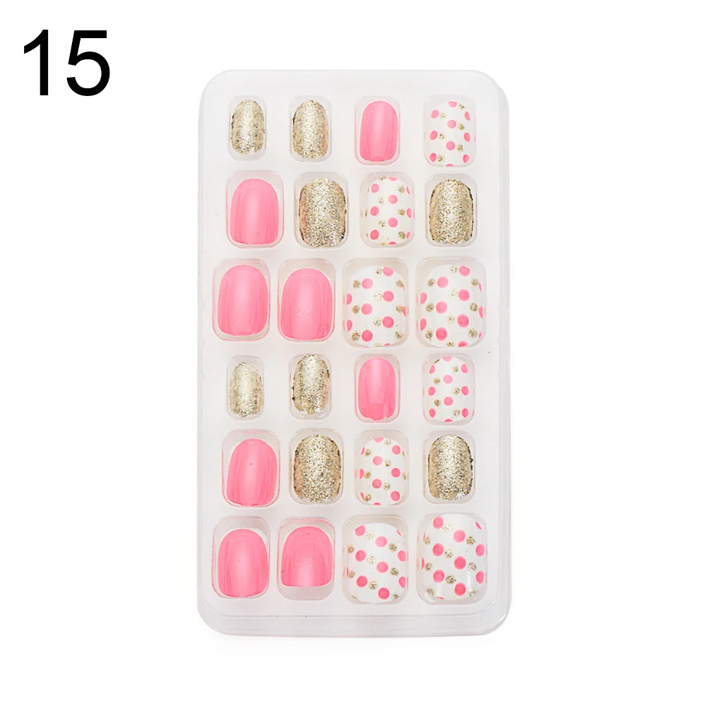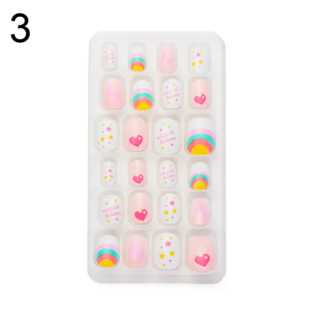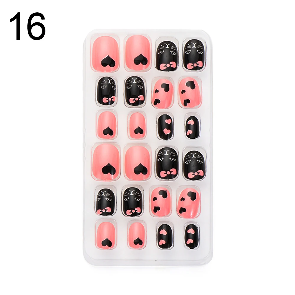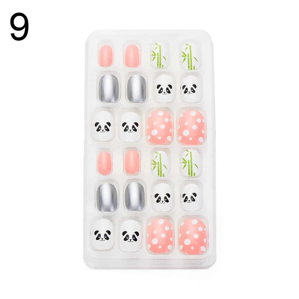 Накладные ногти, 24 шт.лот, для детей, мультяшный клей, самоклеящийся, инструменты для маникюра