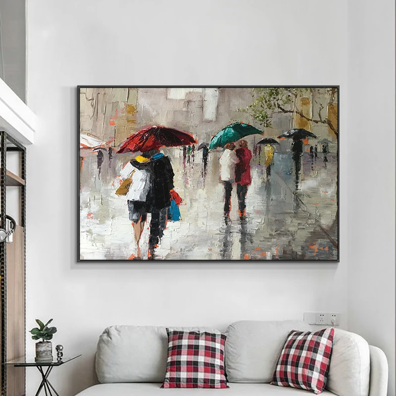 Дождливая уличная прогулочная прохожий картина маслом настенная живопись холст постеры и печать Nordoc картина для гостиной домашний декор