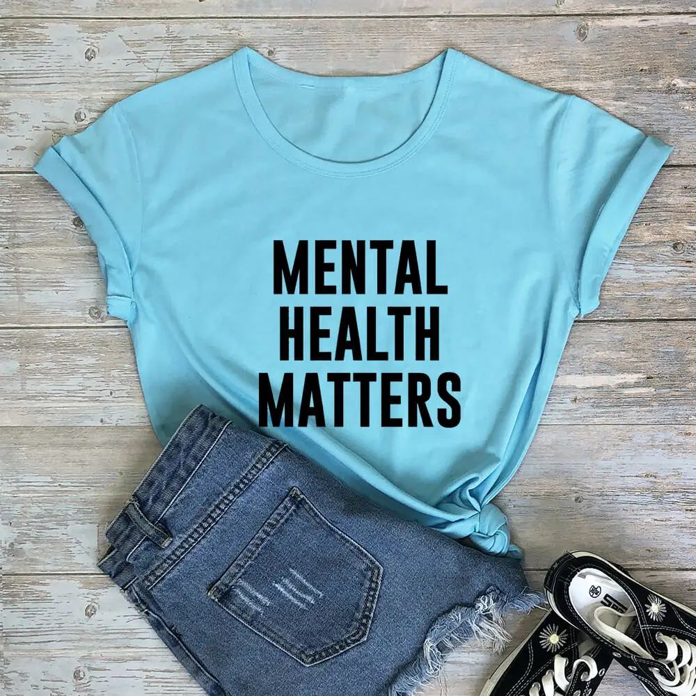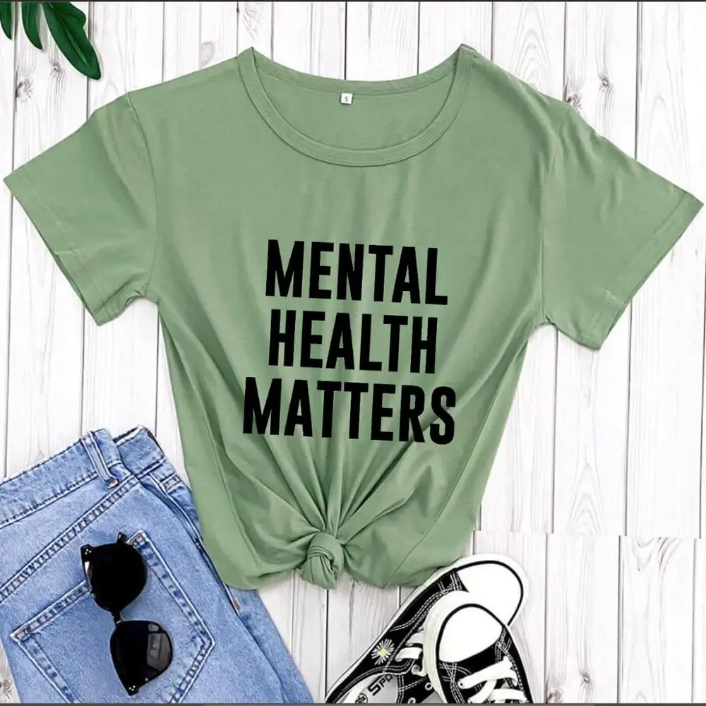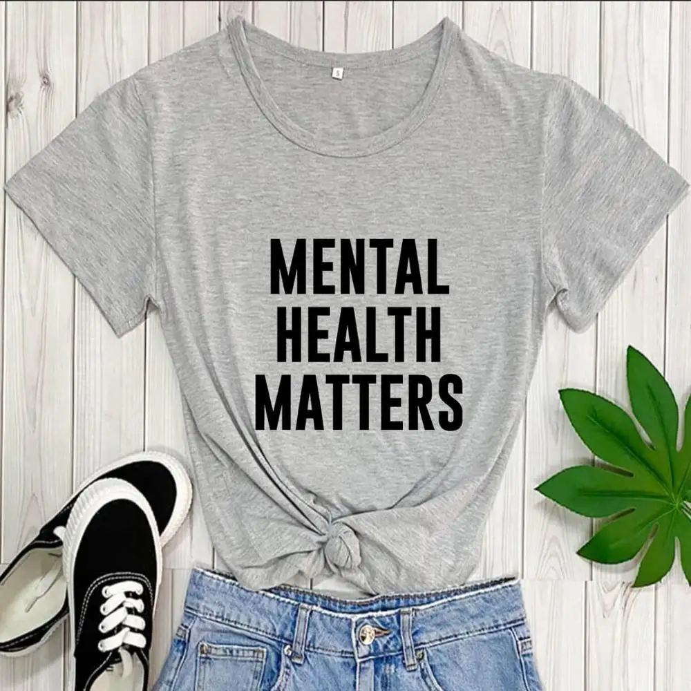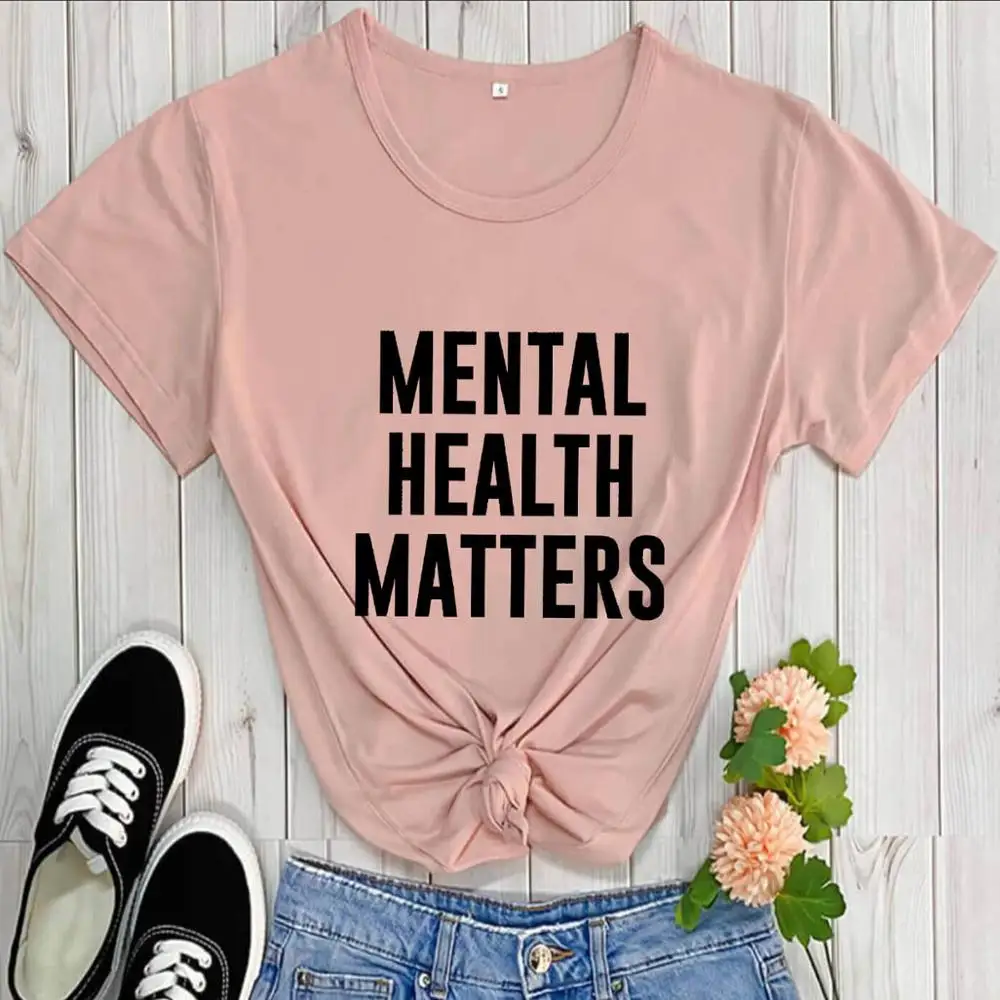 Mental Health Matters, 100% хлопок, повседневная женская футболка с круглым вырезом, топы с короткими рукавами, рубашки для умственного здоровья