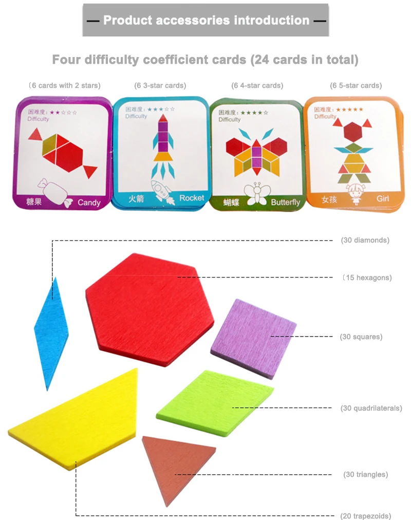 155 шт головоломки для детей геометрические Танграм деревянные раннего образования Деревянные игровые игрушки для детей Монтессори обучающие игрушки