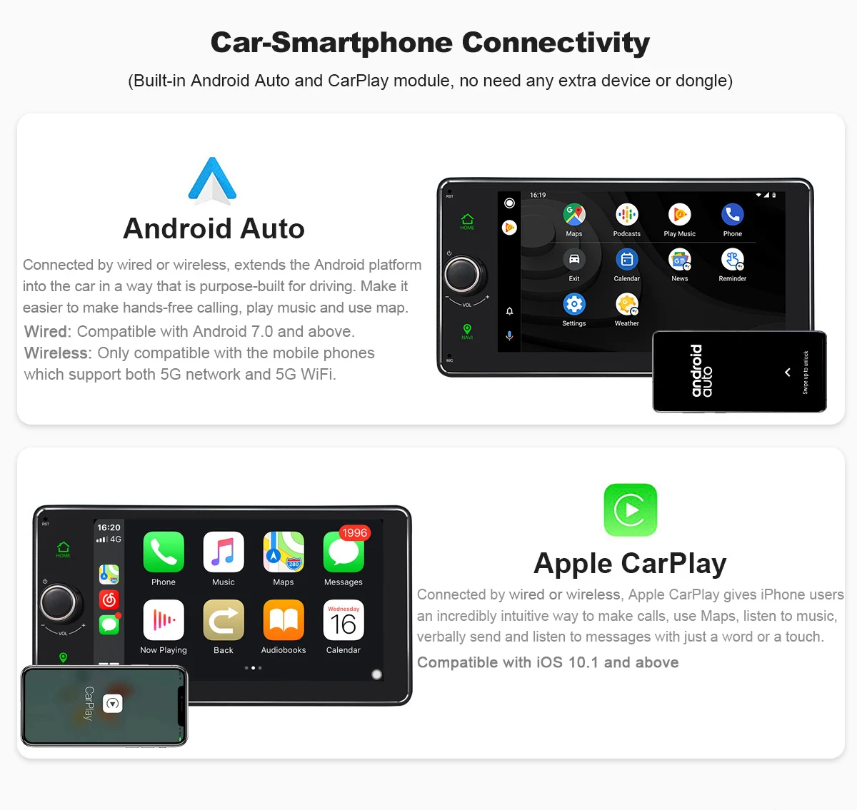 * Мощная система Android 10.0.* CPU:UIS7862 Восьмиядерный 1.8GHz@4.0GB (память) + 64 ГБ (память).* Встроенный Android Auto & Apply Carplay.* Встроенный слот для sim-карты.* Оптический выход и коаксиальный выход.* Встроенный DSP с 32-полосным эквалайзером.* 5 ГГц WIFI обеспечивает высокую скорость загрузки.* Радиочип TDA7786, чип усилителя: TDA 7851.