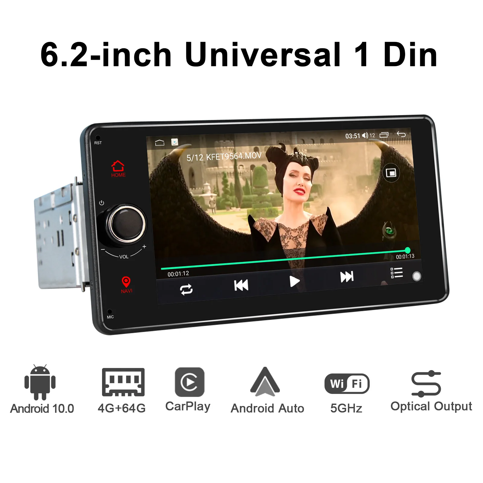 Автомобильная магнитола JOYING 1din, 6,2 дюйма, Android 10, 4 ГБ, 64 ГБ, Авторадио, универсальная головная магнитола, мультимедийный проигрыватель, Carplay, 4G, Wi-Fi, DVR