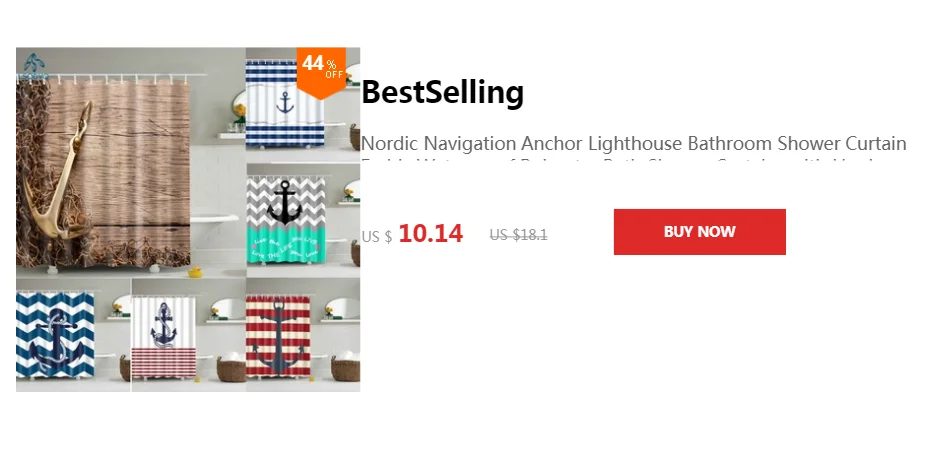 Занавеска для душа с крючками, занавеска для ванной, якорь, осьмино...