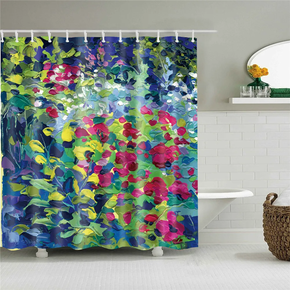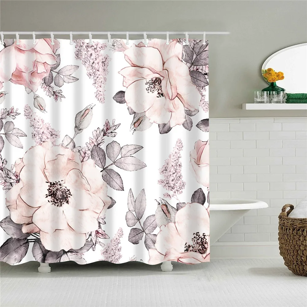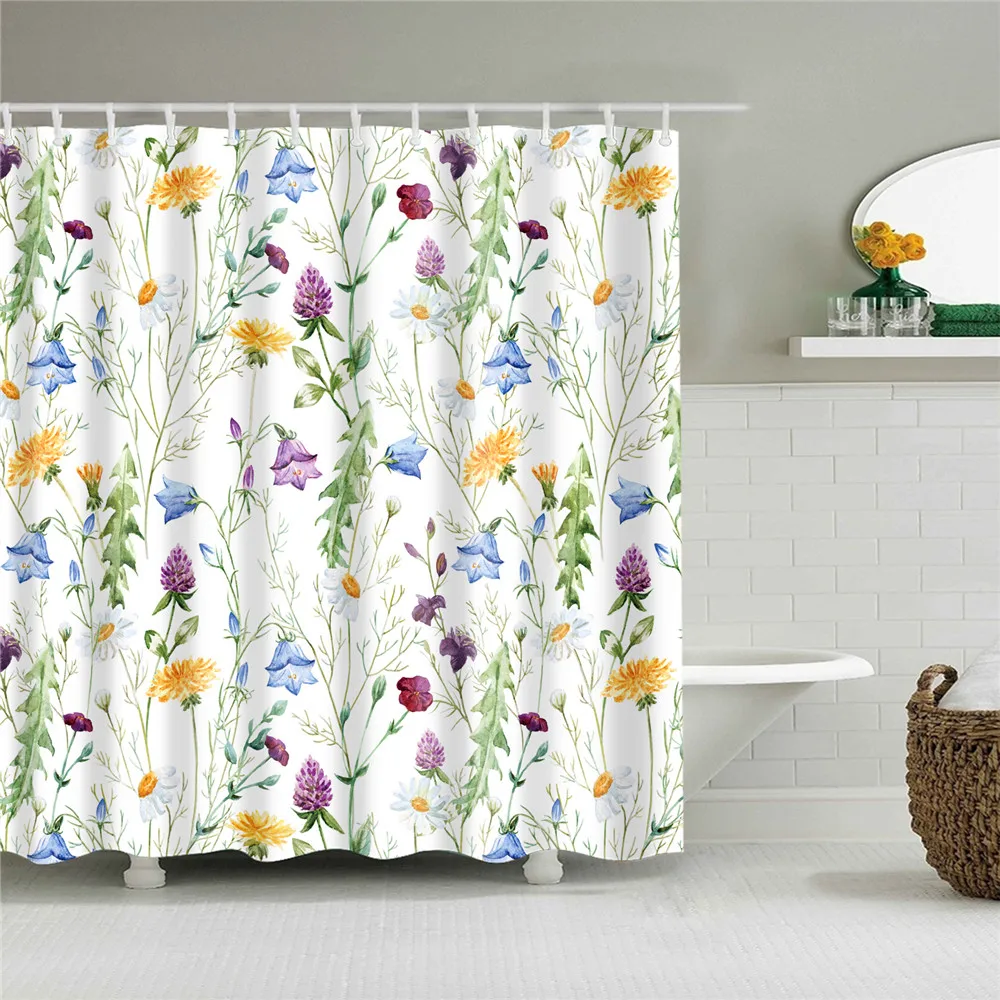 Занавеска для душа из водонепроницаемого полиэстера с цветами, живо...