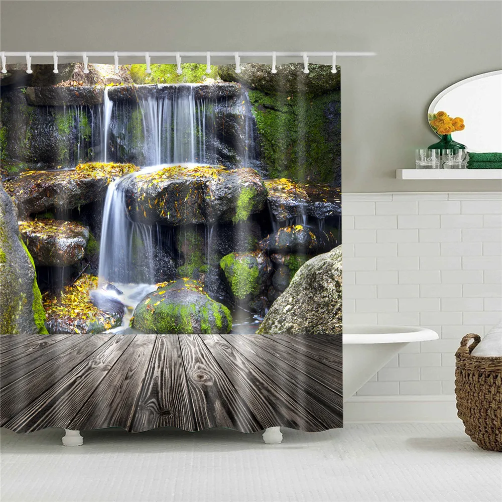 Штора для душа с изображением природного пейзажа, Современная Водон...