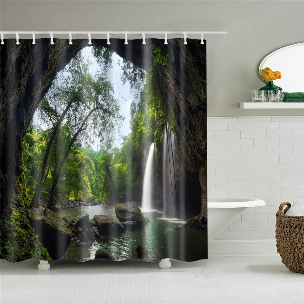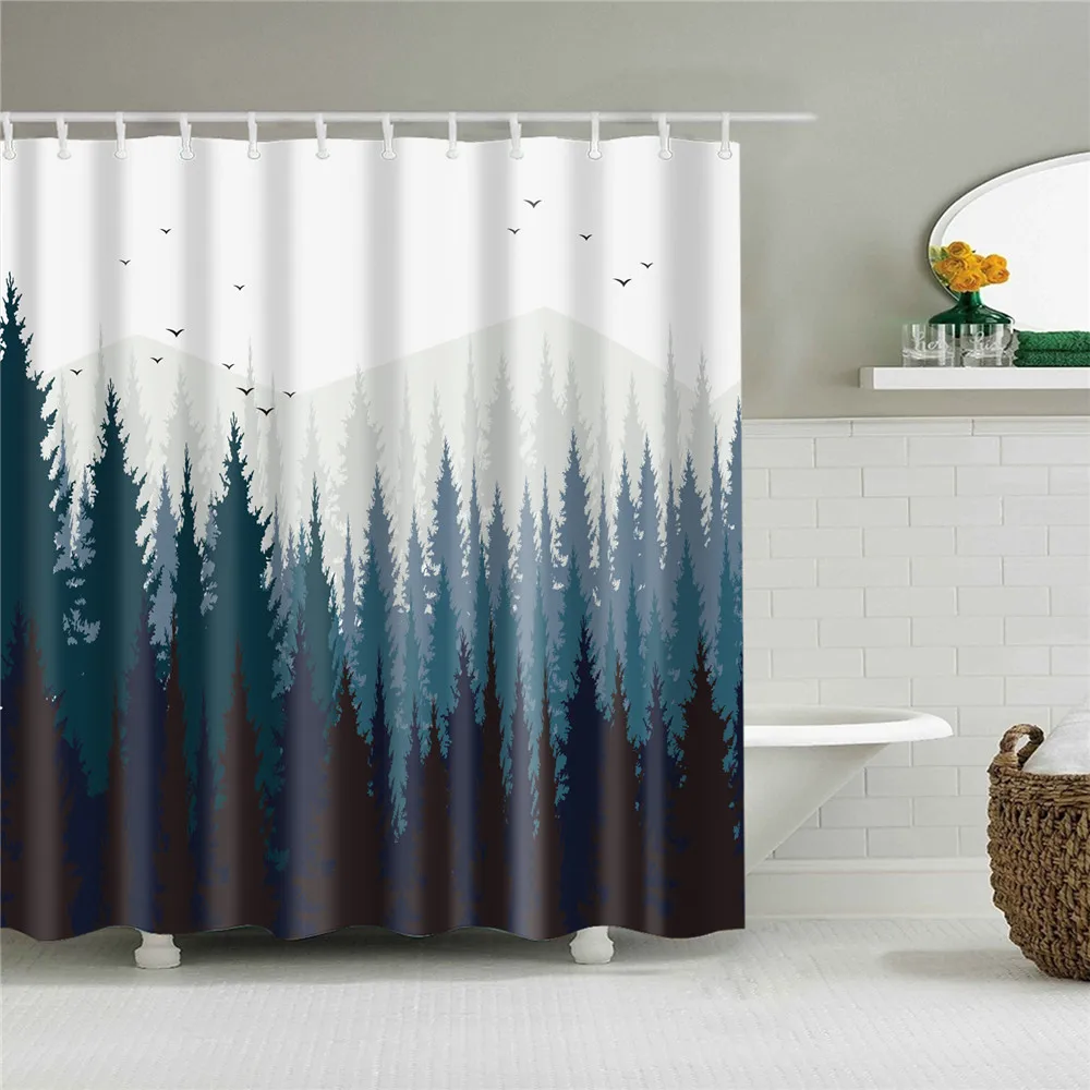 Занавески для душа из полиэстера, водостойкие, с 3D-принтом леса