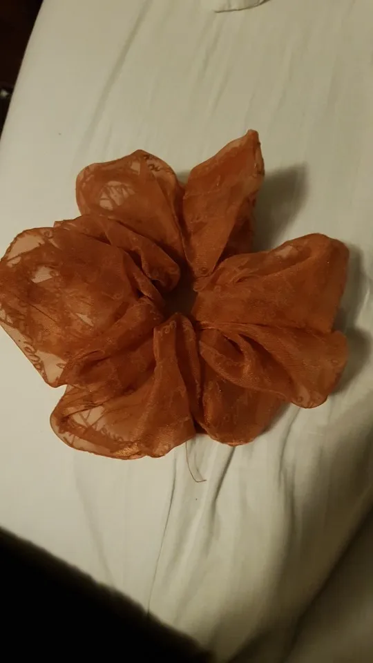 Резинка обьемная , красивая . Хорошо смотрится на голове .