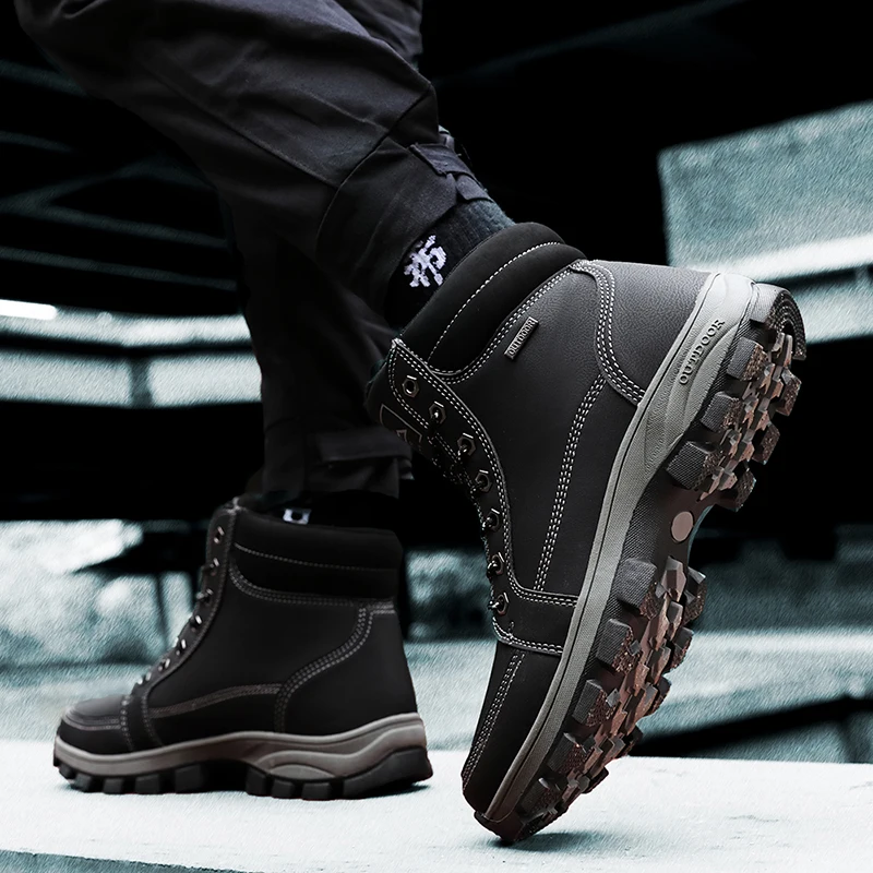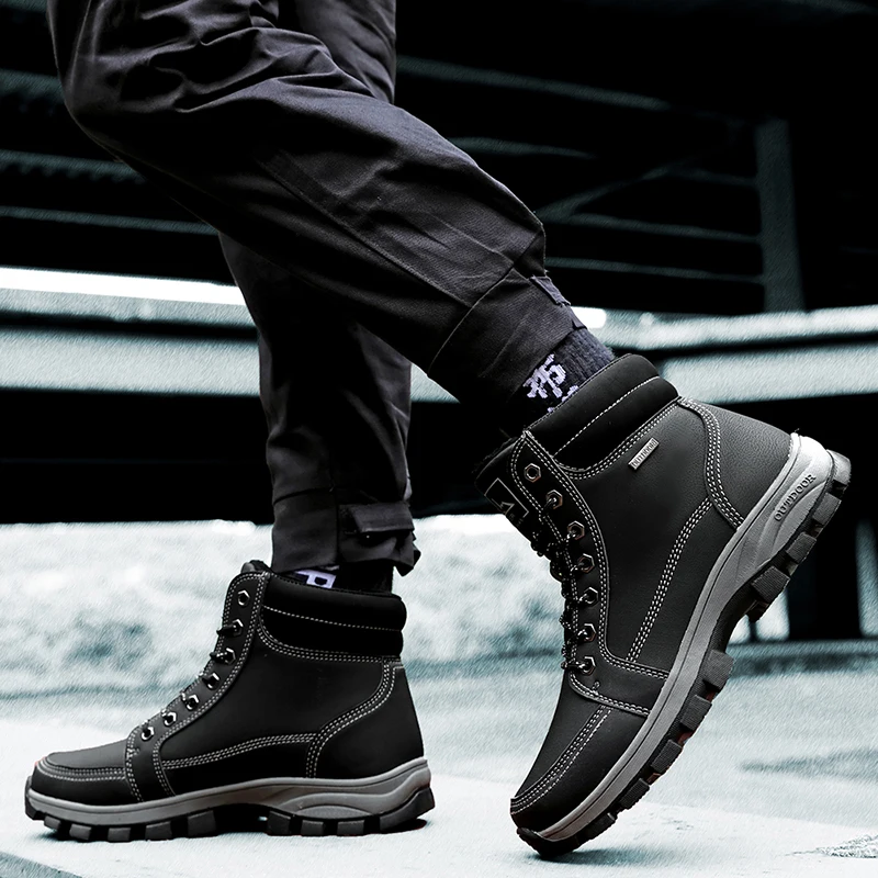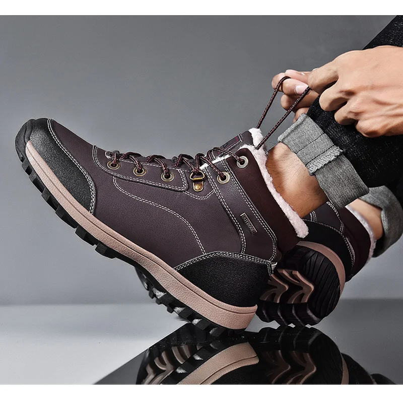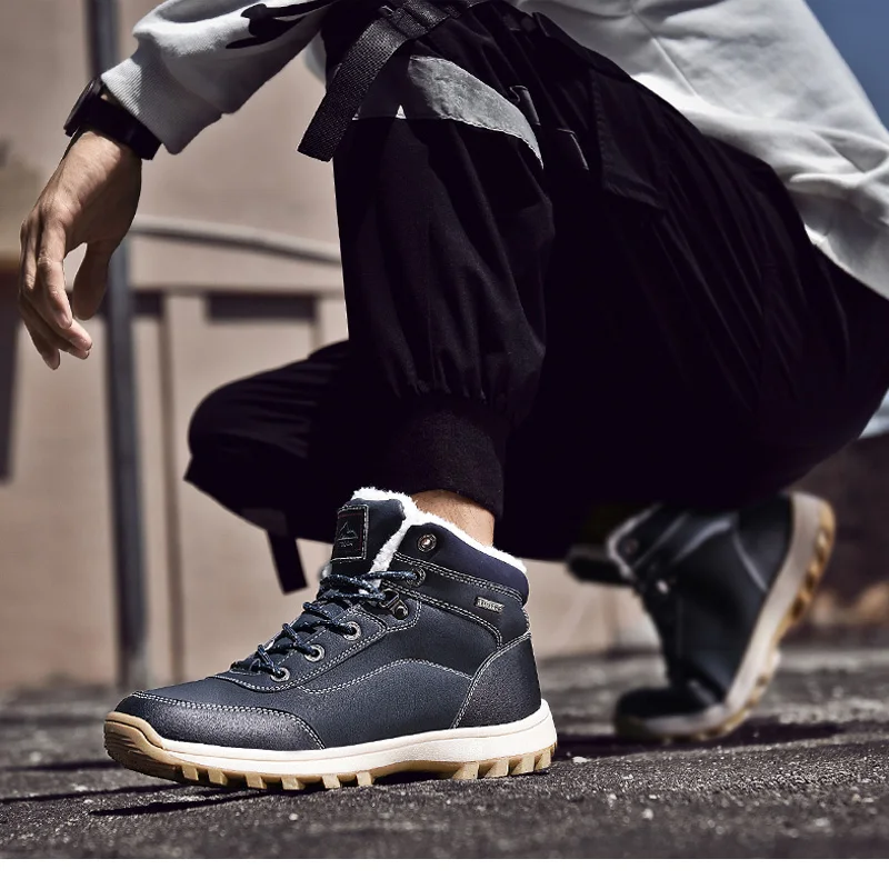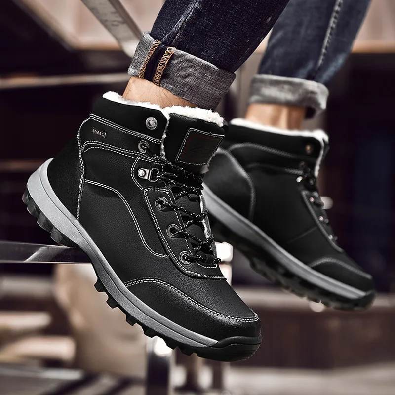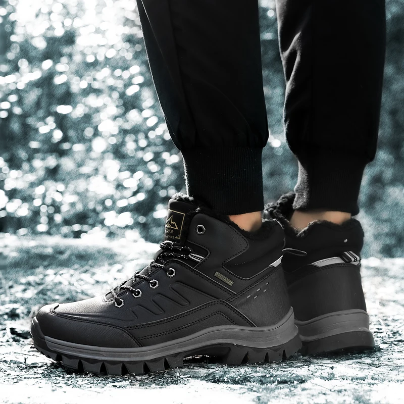 Зимние мужские зимние ботинки размера плюс, теплые плюшевые мужские ботинки, водонепроницаемые кожаные ботильоны, уличные Нескользящие мужские походные ботинки, кроссовки