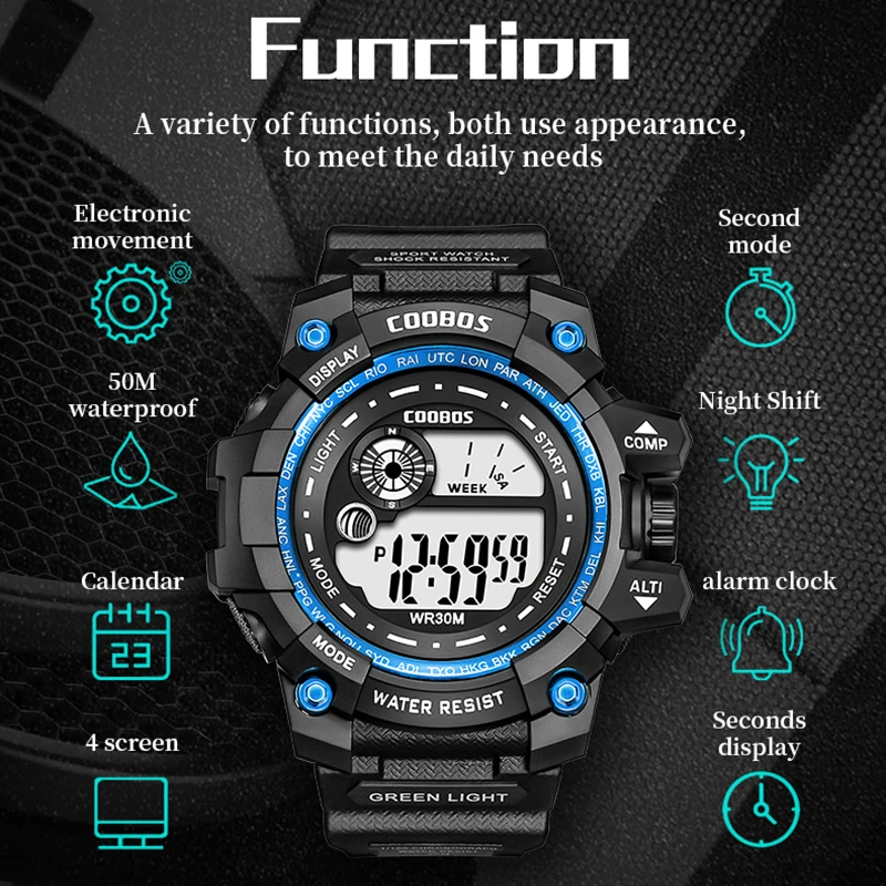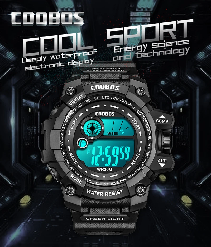 Часы наручные COOBOS Мужские Цифровые, Брендовые спортивные, для фи...