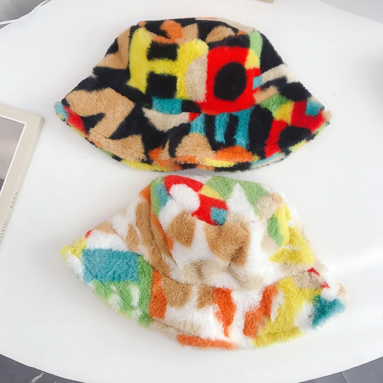Шапка женская зимняя из искусственного меха, разноцветная, с буквенным узором