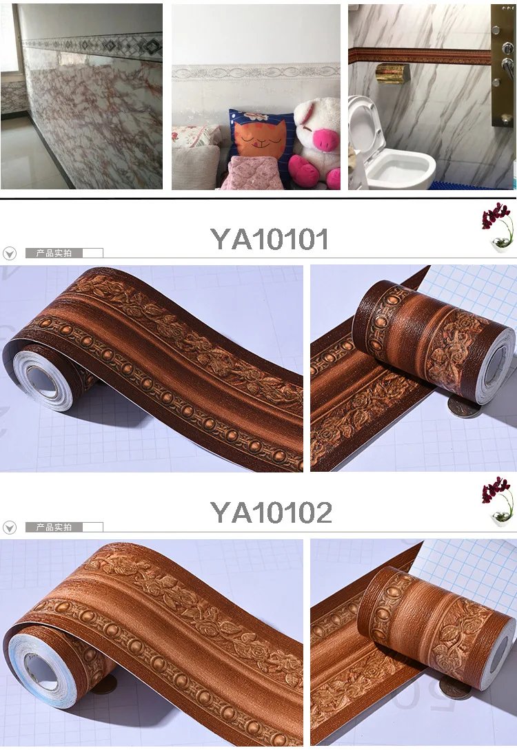 Высокое качество, цветочные обои, границы, водостойкая плитка для ванной комнаты, 3d ПВХ, винтажная Цветочная отделка стен, линия, плинтус, наклейка J202
