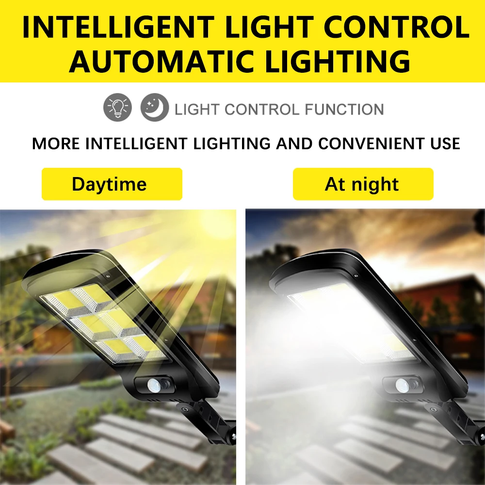 COB солнечный светильник, мощный светодиодный настенный светильник с дистанционным управлением, уличный светильник с датчиком движения PIR IP65, водонепроницаемый уличный садовый светильник