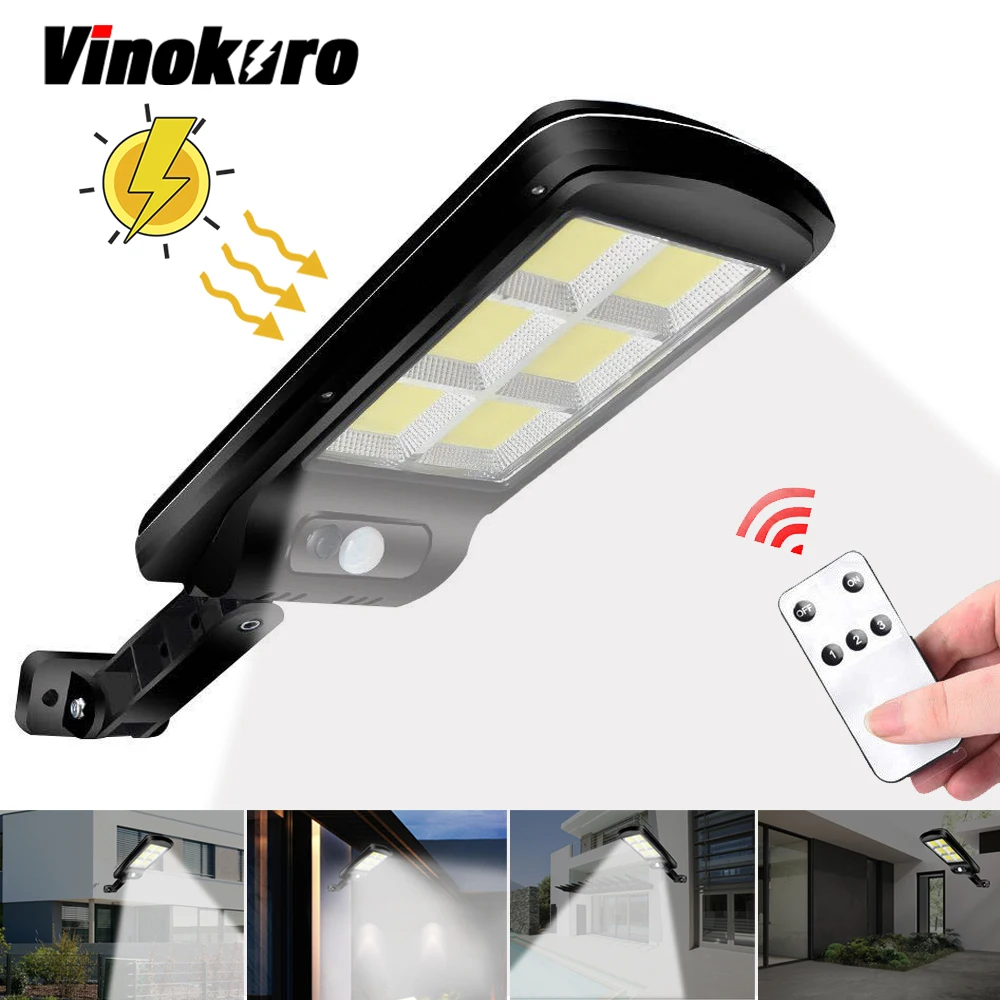 Vinokuro мощный светодиодный светильник на солнечной батарее с дистанционным управлением, с датчиком движения PIR IP65, уличный светильник на солнечной батарее