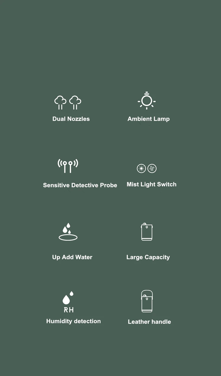 1. Зарядное устройство для телефона 2. Дополнительный внешний аккумулятор 3. Usb-порт для ноутбука Туман: короткий пресс-переключатель запуска непрерывного тумана, короткий пресс-переключатель снова запускает прерывистый туман (спрей 3s стоп 2s), короткий пресс-переключатель снова выключает туман. Свет: длинный пресс-переключатель 2s Включите цветной светодиодный ночник, долгое нажатие еще раз выключите свет