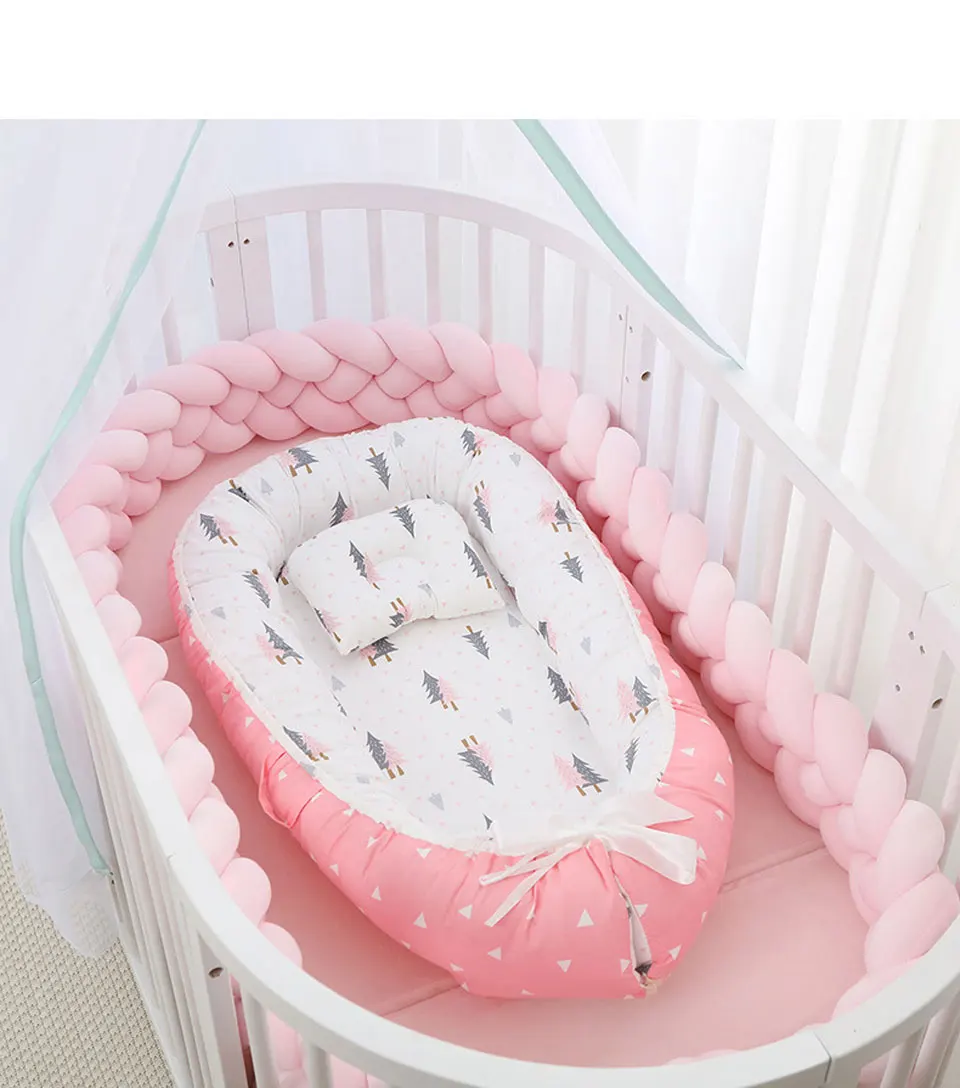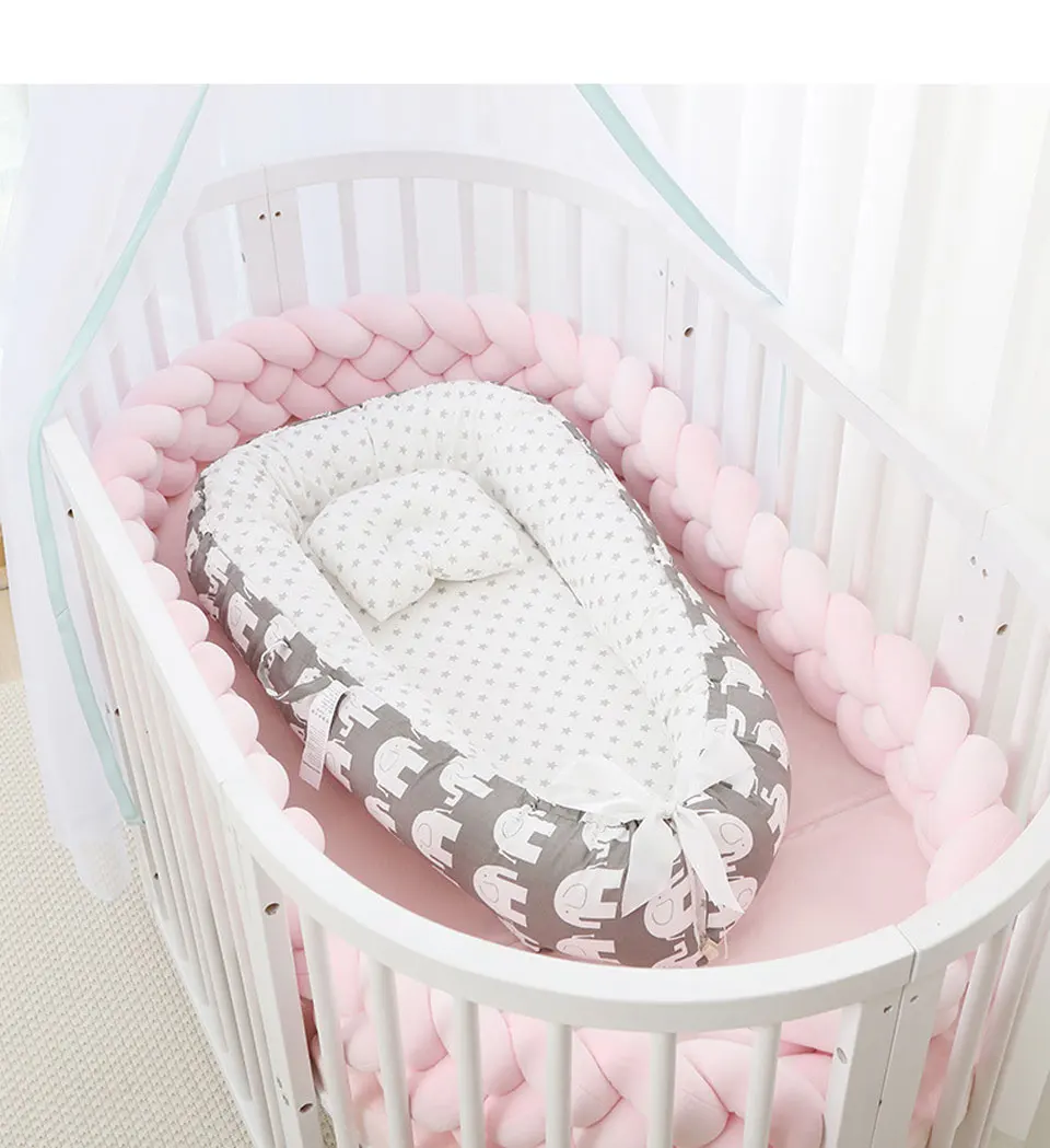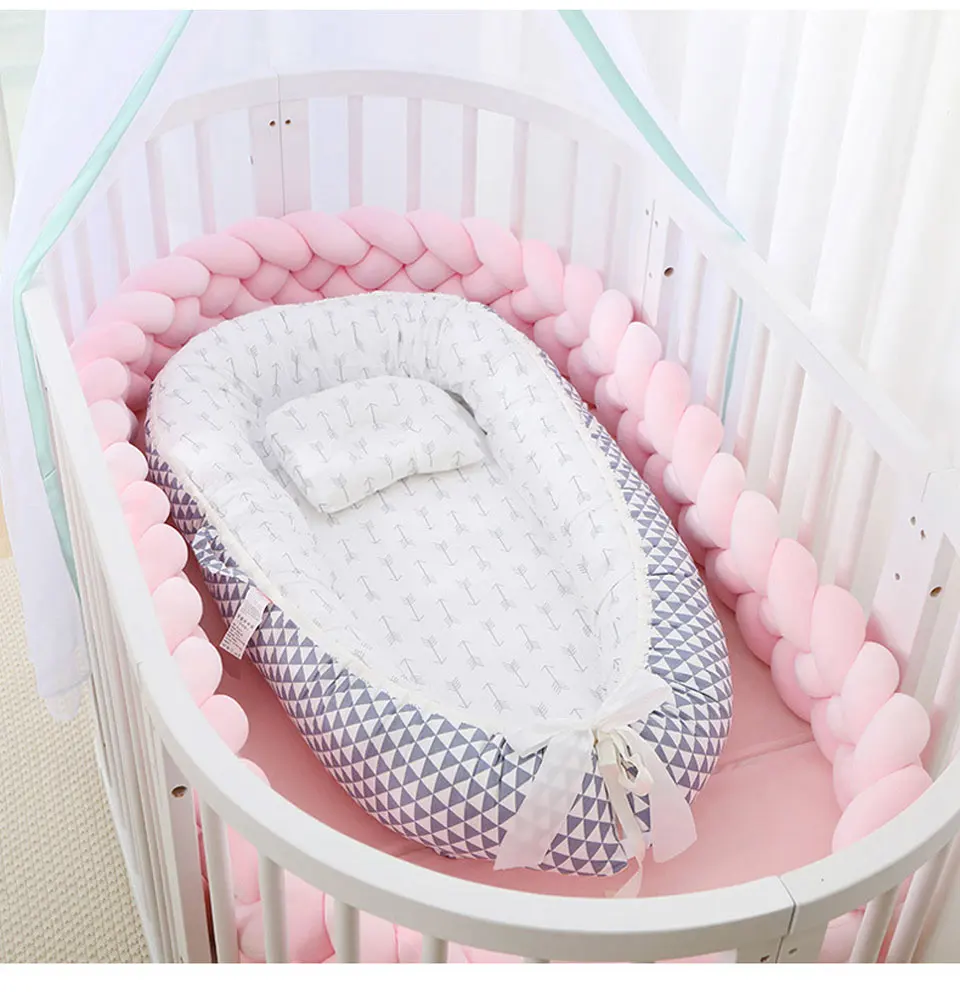 Портативная кровать для новорожденных 85*55 см, хлопок, моющаяся детская кроватка, подходит для детей 0-18 месяцев, бампер