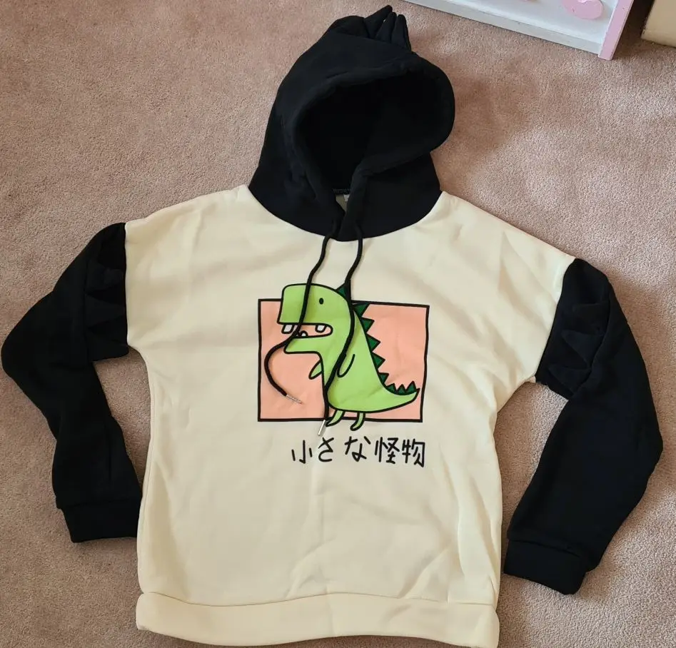 Женская толстовка с принтом динозавра, Повседневная Толстовка с длинным рукавом, черный, фиолетовый, розовый, синий, Осенние теплые толстовки