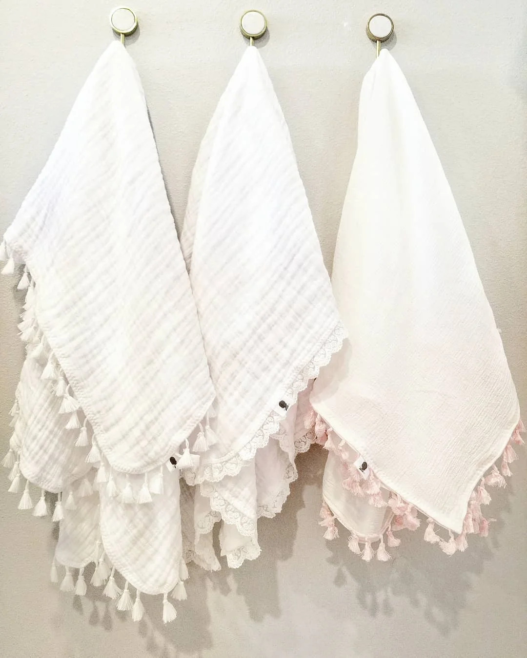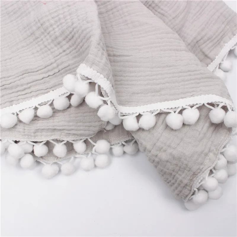 Одеяло детское с бахромой, муслиновое одеяло для новорожденных, с помпоном, для ванны, 120x100 см